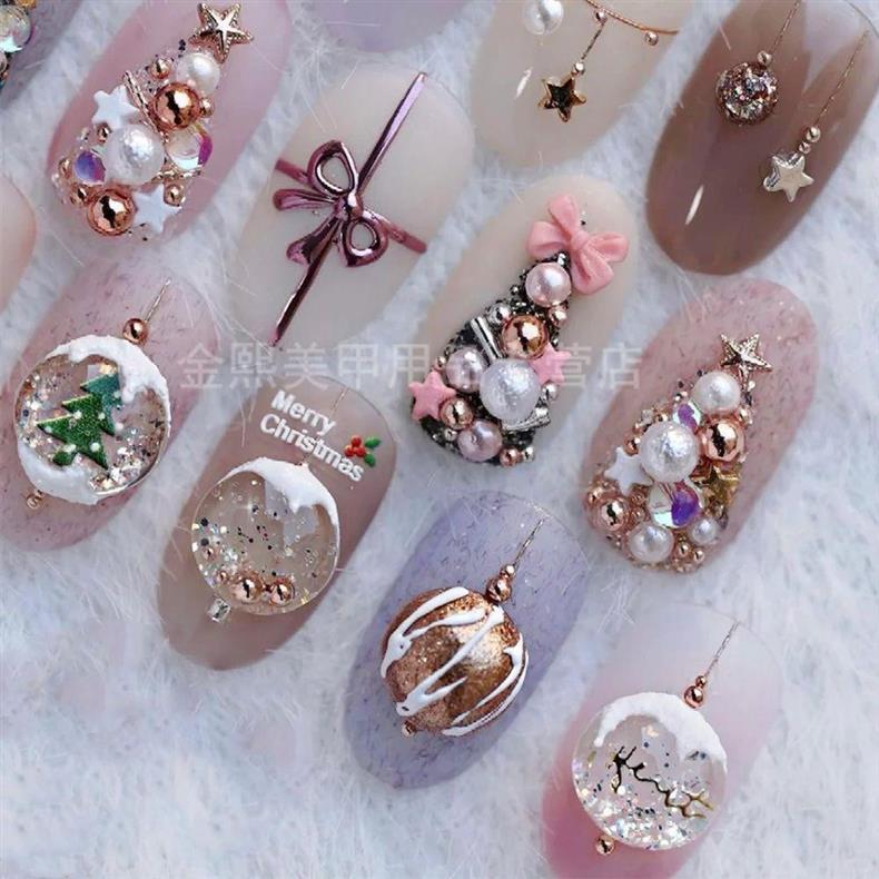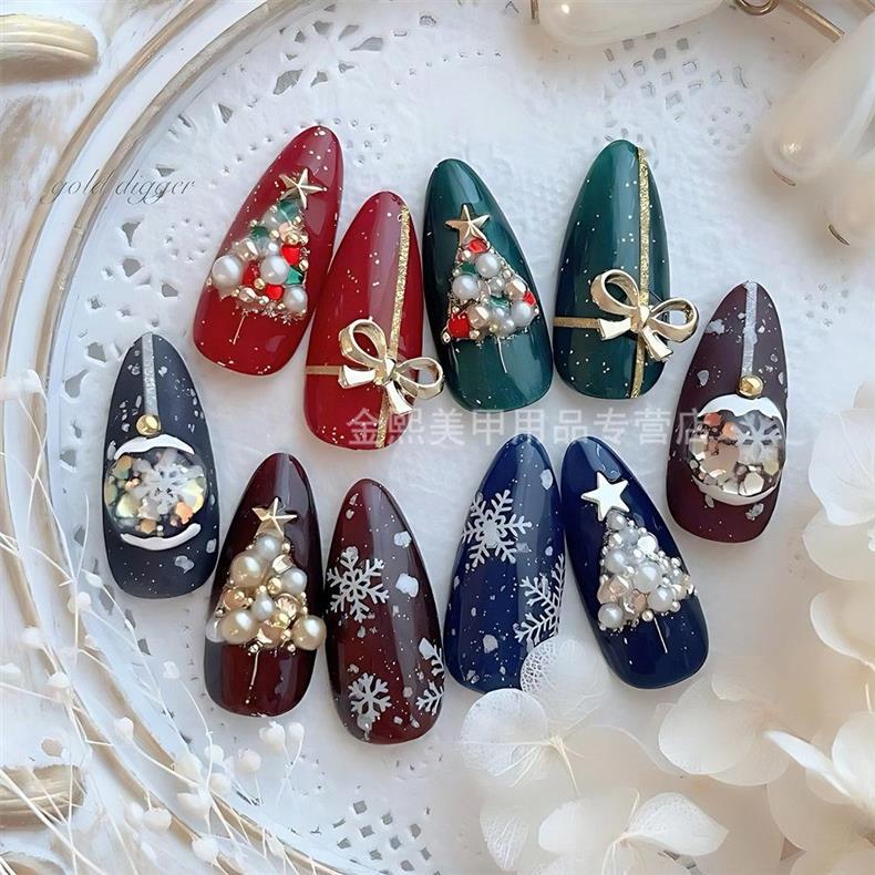 跨境新款美甲贴冬日圣诞节圣诞树雪花彩灯小饰品美甲5D浮雕背胶贴