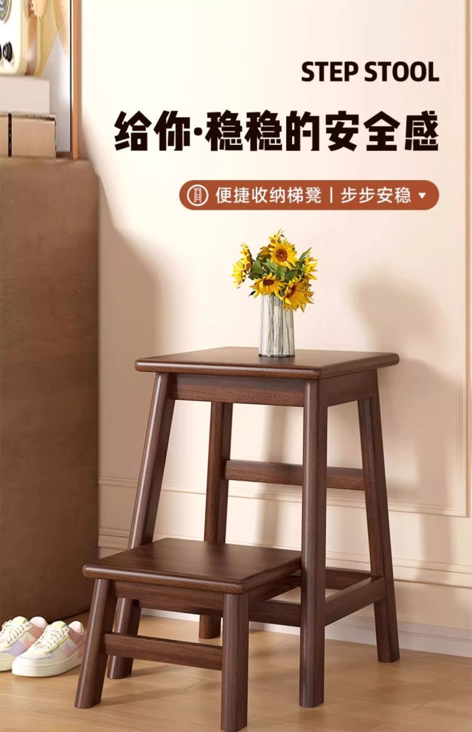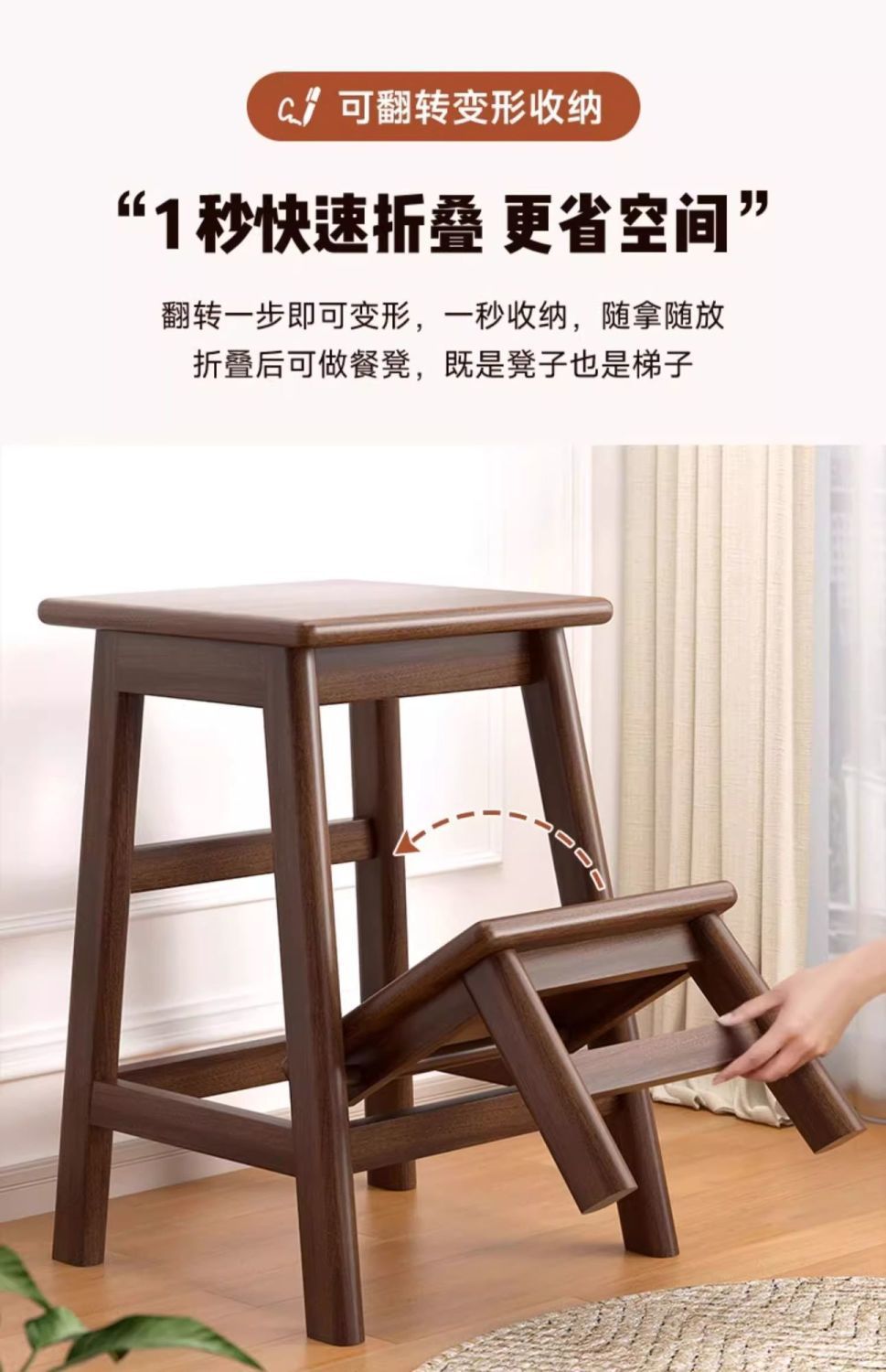 家用新款凳子可折叠凳子登高二步梯凳多功能厨房两用梯子实木梯凳
