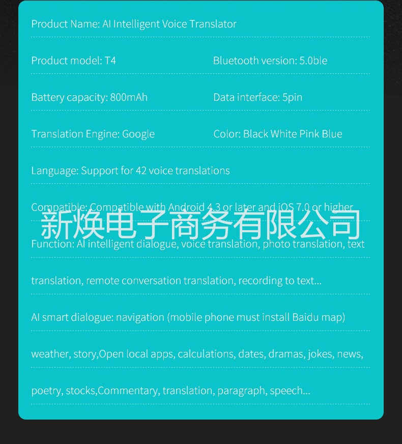 功能:AI智能对话、语音翻译、照片翻译、文本翻译、远程对话翻译、录音到文本、录音翻译