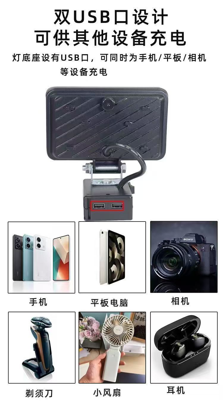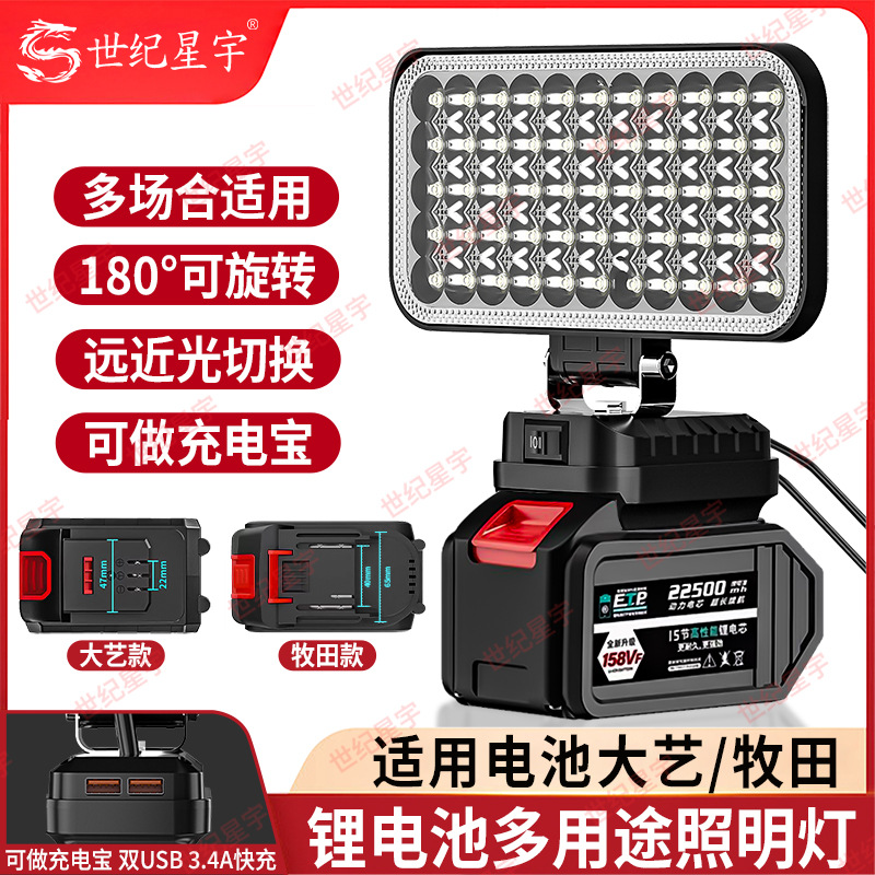 适用大亿锂电池照明灯LED工作灯牧田18V20V便携式维修灯应急灯