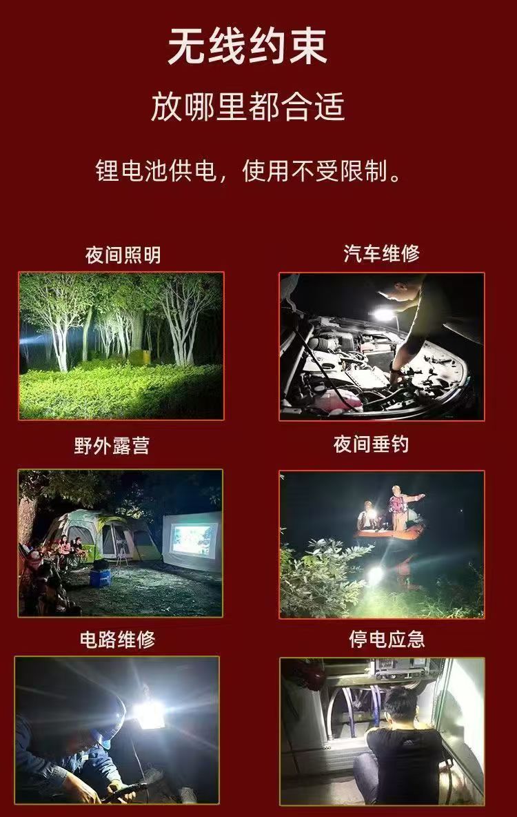 LED便携户外野钓鱼工作照明锂电应急灯汽修超亮露营不插电强光灯