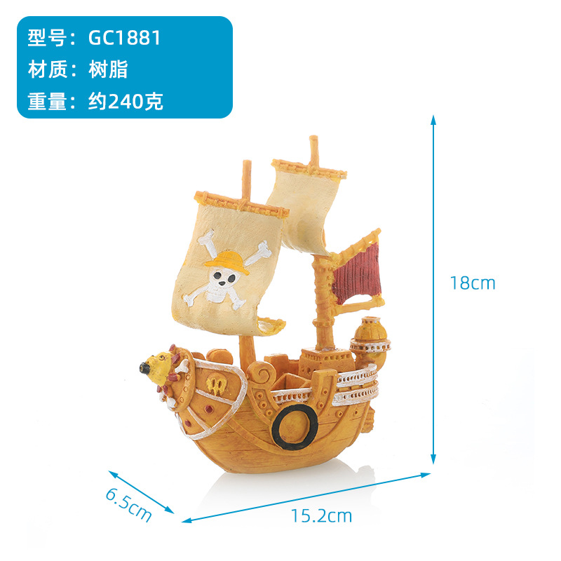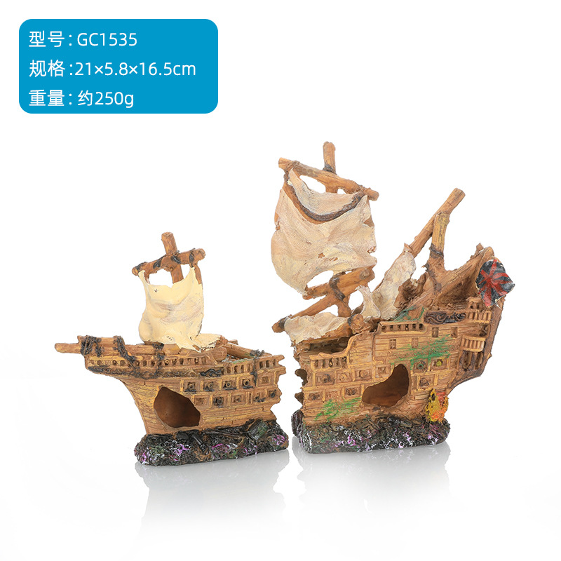 海賊船水槽造景水槽造景装飾船よけ屋置物船中空樹脂船沈没船GC