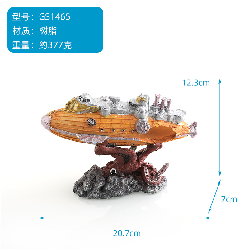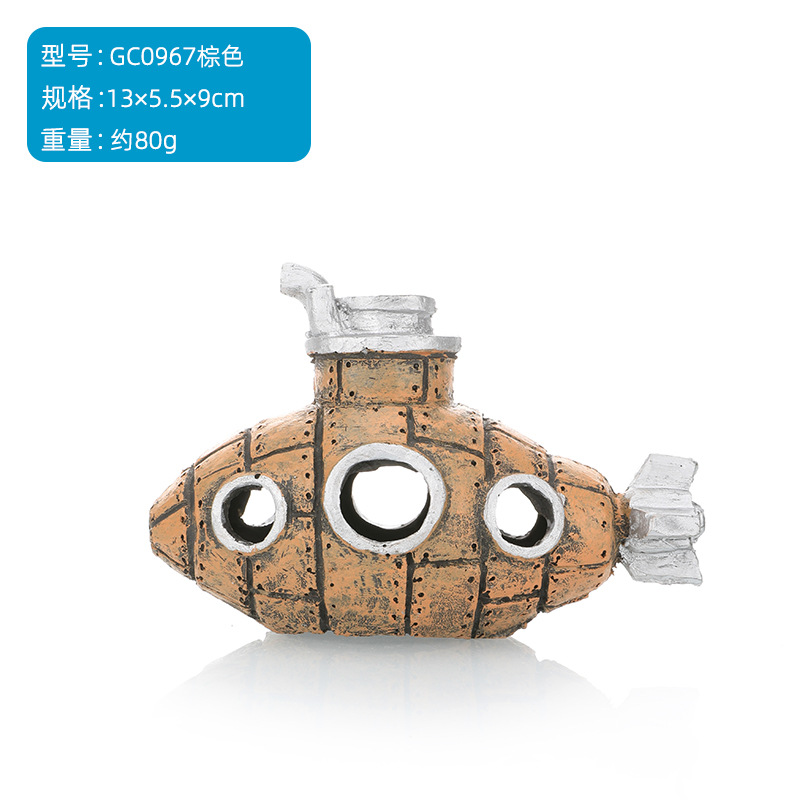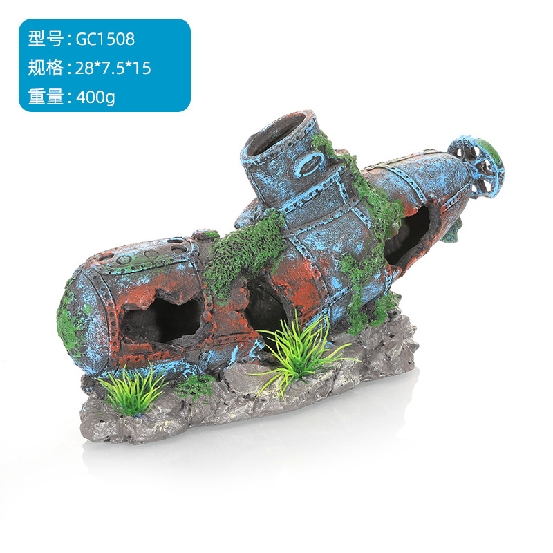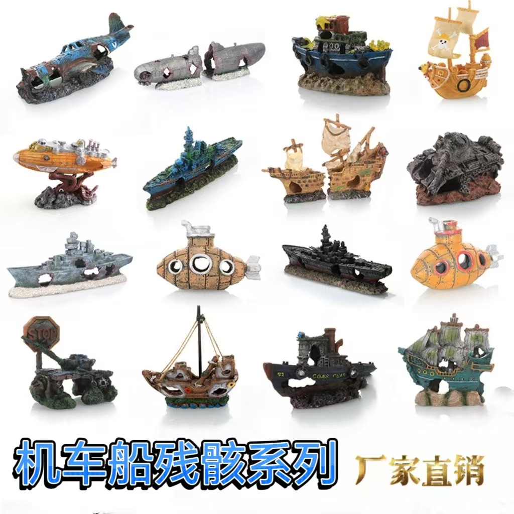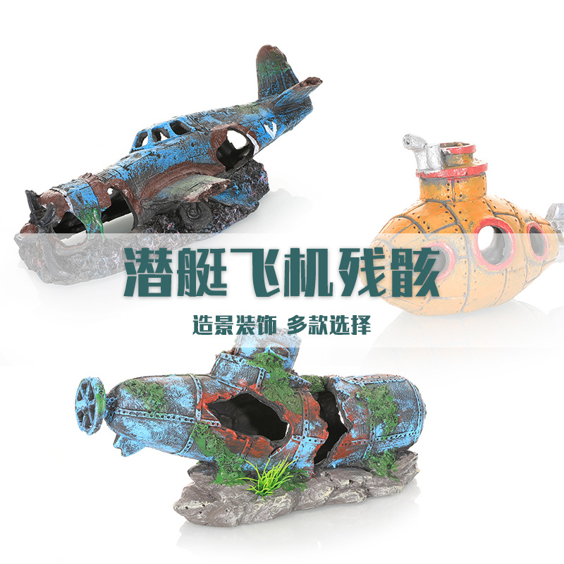 越境水槽造景用飛行機残骸沈没船潜水艦装飾魚エビ隠れ家洞窟爬虫類用品越境装飾品