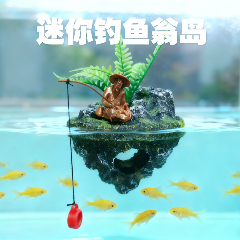 新款迷你钓鱼翁漂浮岛超迷你鱼缸造景漂浮岛造景假山钓鱼翁浮岛