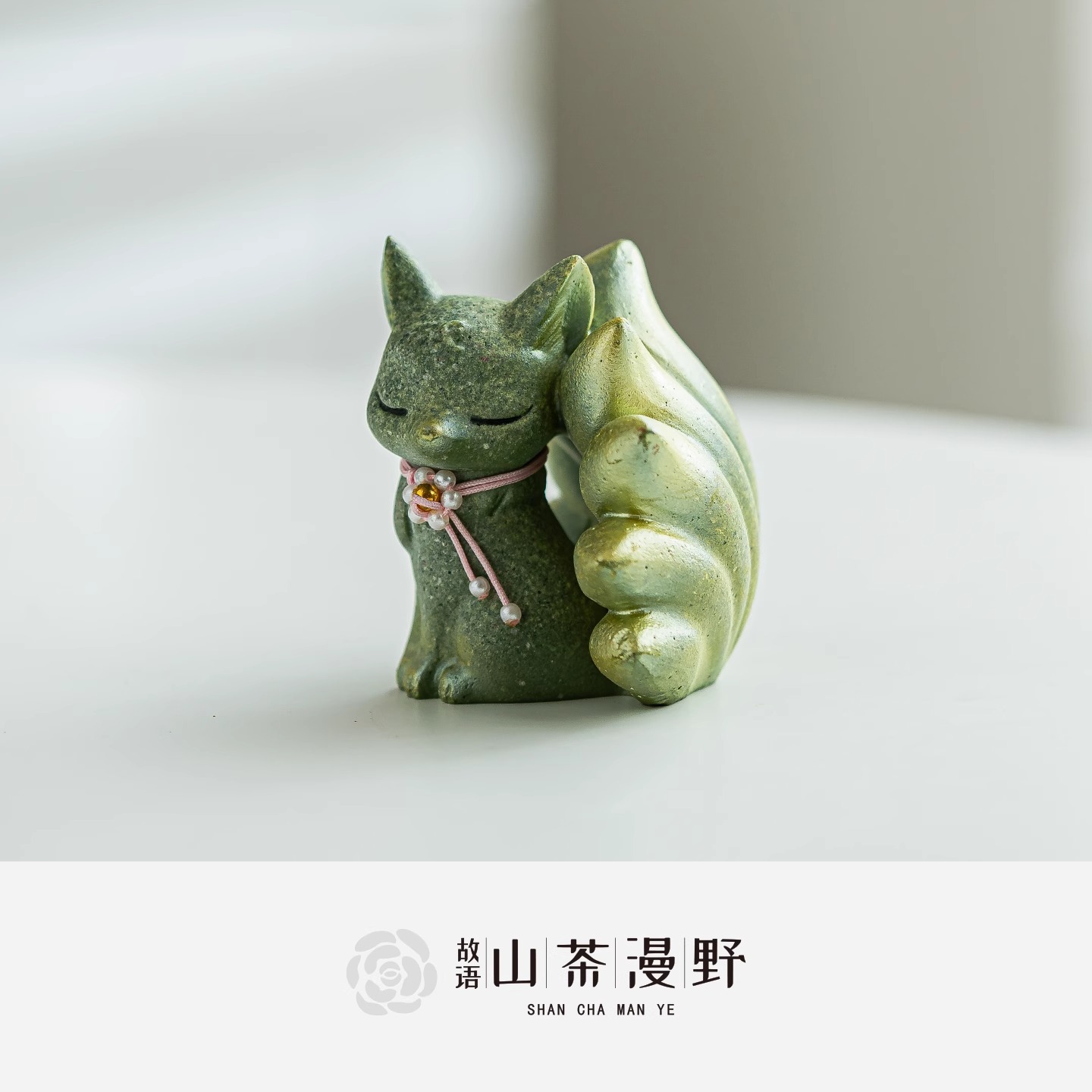 九尾狐国潮文创茶宠造景摆件精品小灵狐宠物青砂石鱼缸造景送礼