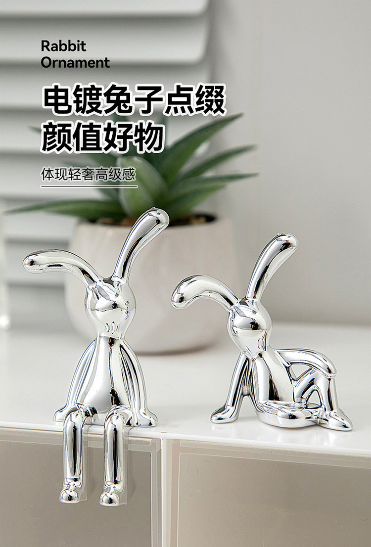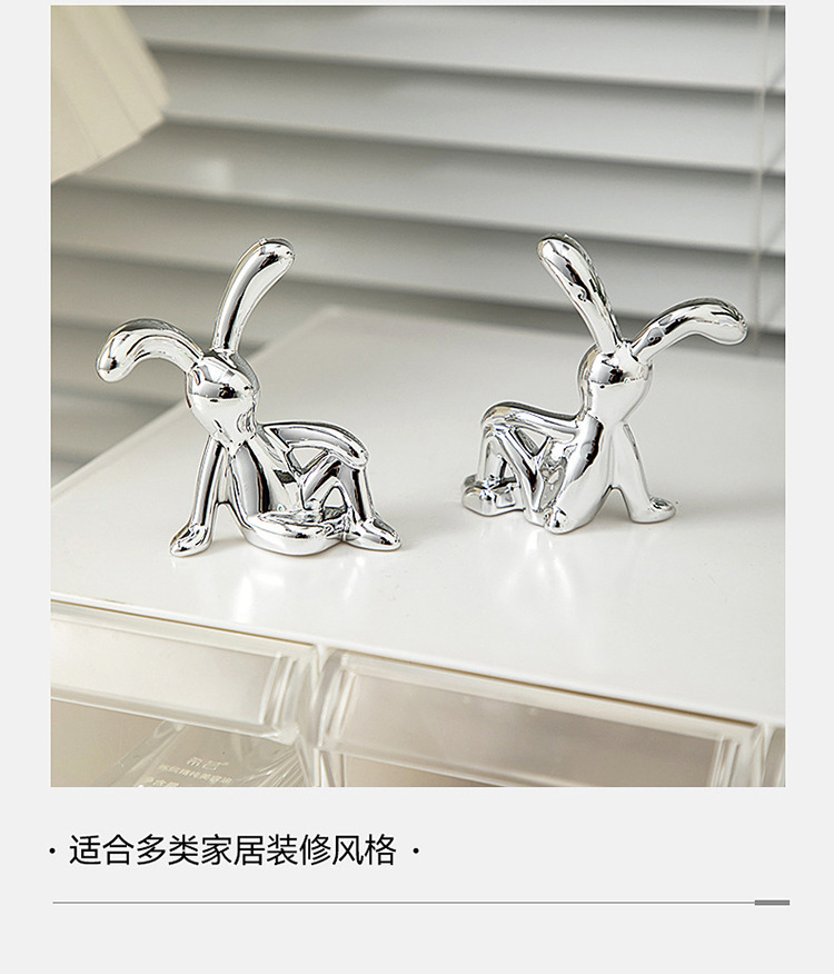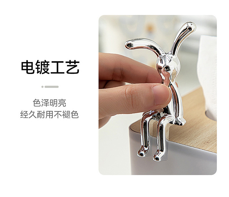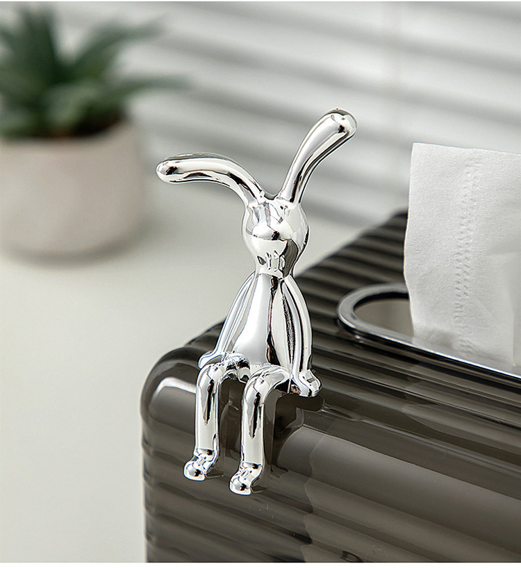 高級感のあるモダンな電気メッキのクリエイティブなウサギのベッドサイドテーブル飾り、軽奢なリビングルームのトレンディなアイテム、車載テレビキャビネット、ティッシュボックス