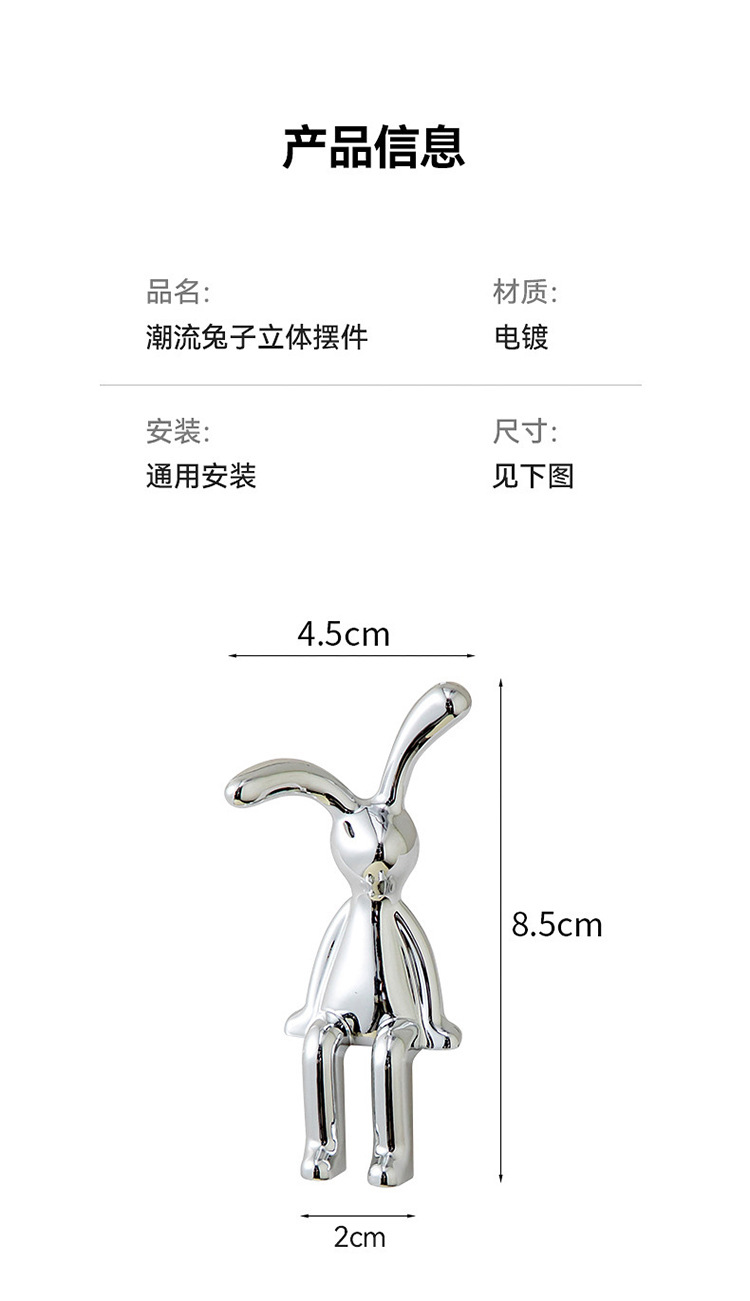 クロスボーダーの軽豪華な潮流の立体のウサギの置物は貼り付け式の電気めっきの長い耳のウサギの萌えの趣味の製品を貼って暴力の熊の置物をたたきます。