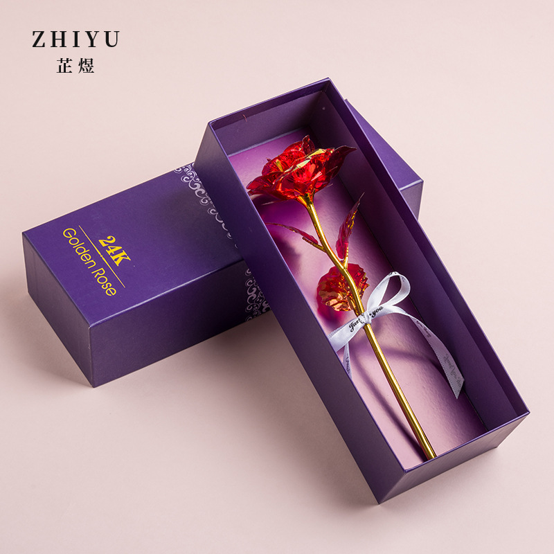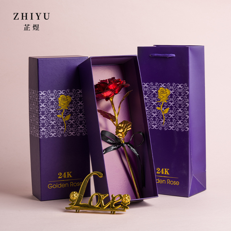 24k金玫瑰花祼花朵七夕情人节礼品DIY金箔玫瑰礼盒配花货源