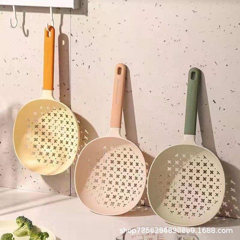 高颜值捞面勺厨房硅胶大漏勺漏勺大漏网家用长柄防滑圆形笊篱沥水