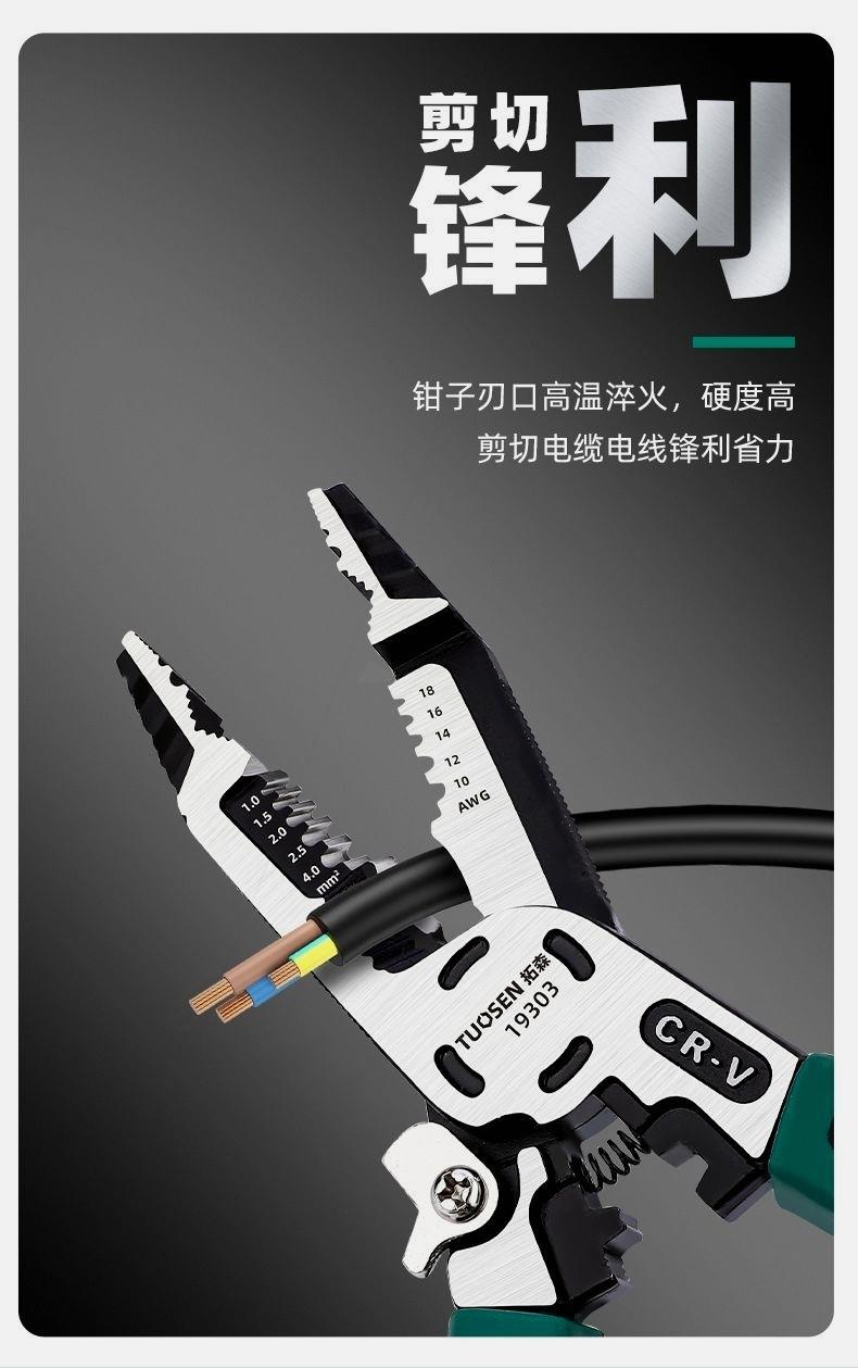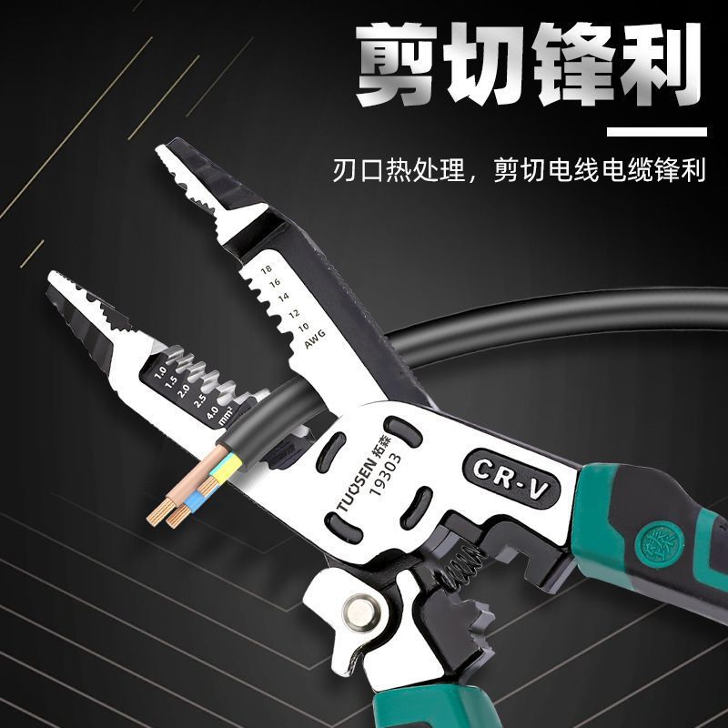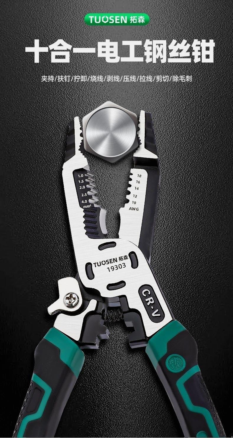 拓森十合一电工工具钢丝钳多功能剥线钳尖嘴钳剪钢丝电工老虎钳子
