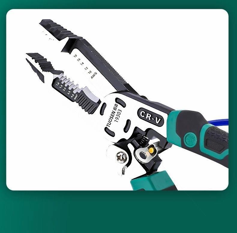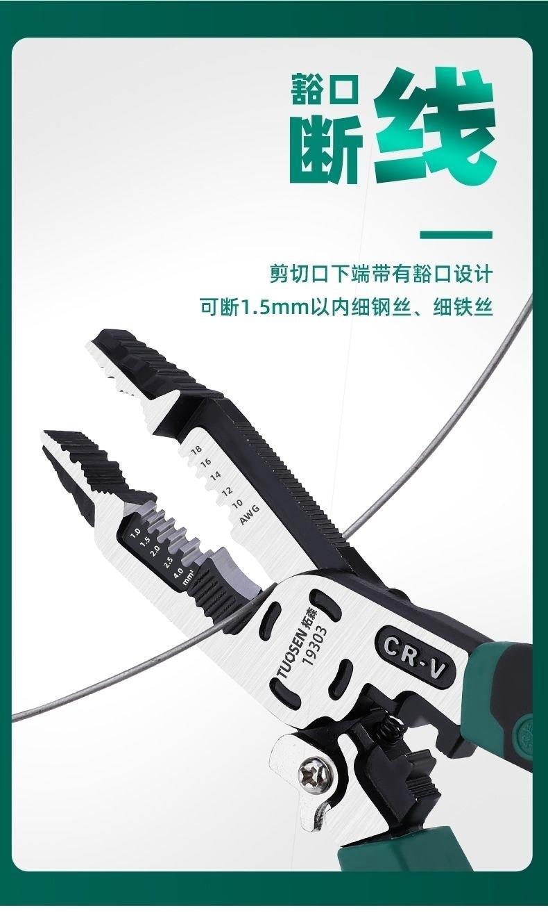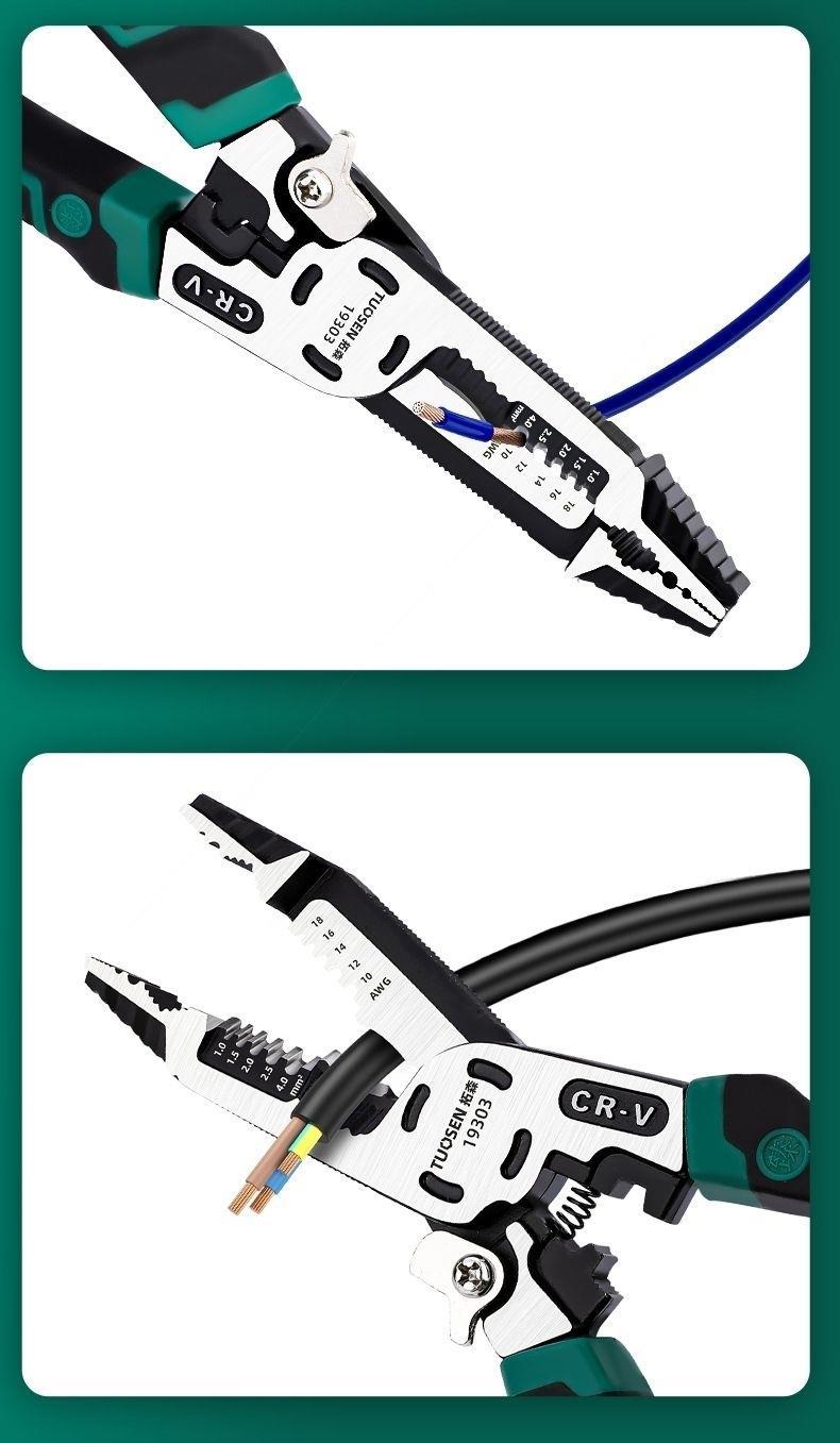 モデル Tuosen 10-in-1 電気技師ワイヤープライヤー多機能ワイヤーストリッピングプライヤーラジオペンチワイヤー切断および圧着家庭用電気技師プライヤー