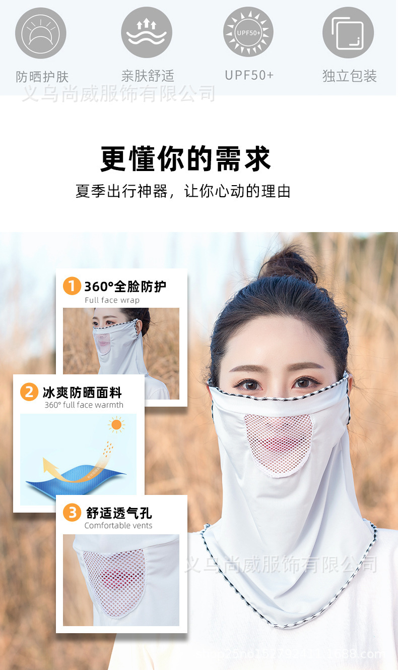 メーカーの夏の新型日焼け止めのベールのマスクの女性の氷の糸のネットの穴の布は紫外線防止のマフラーの日焼け止めのマスクに乗ります。