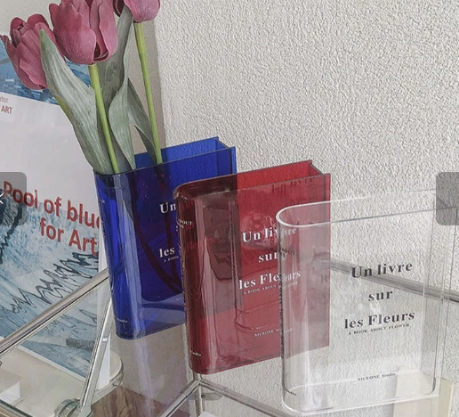 ins风法文亚克力花瓶鲜花插花器咖啡店桌面亚克力书本花瓶摆件