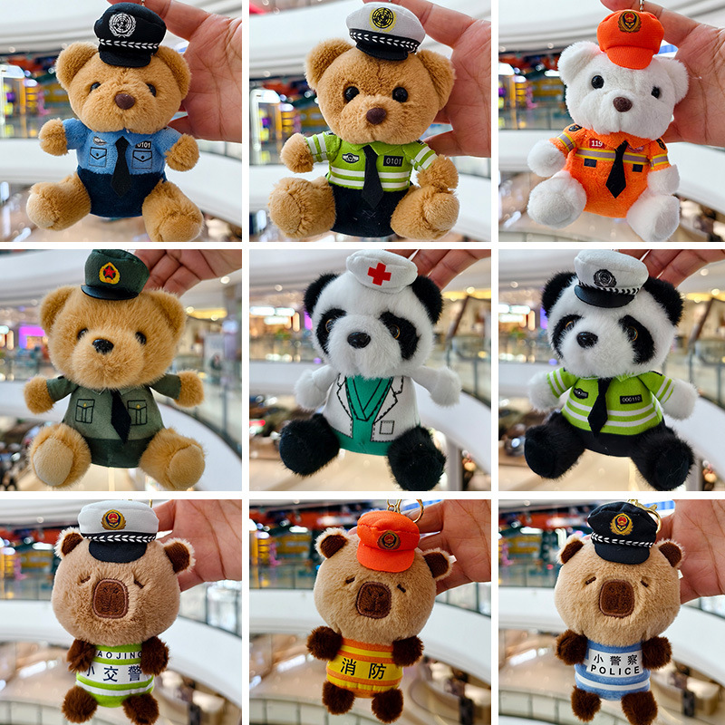 かわいいネット赤交通警官熊ストラップぬいぐるみ人形消防警察熊人形キーホルダー飾りバッグ