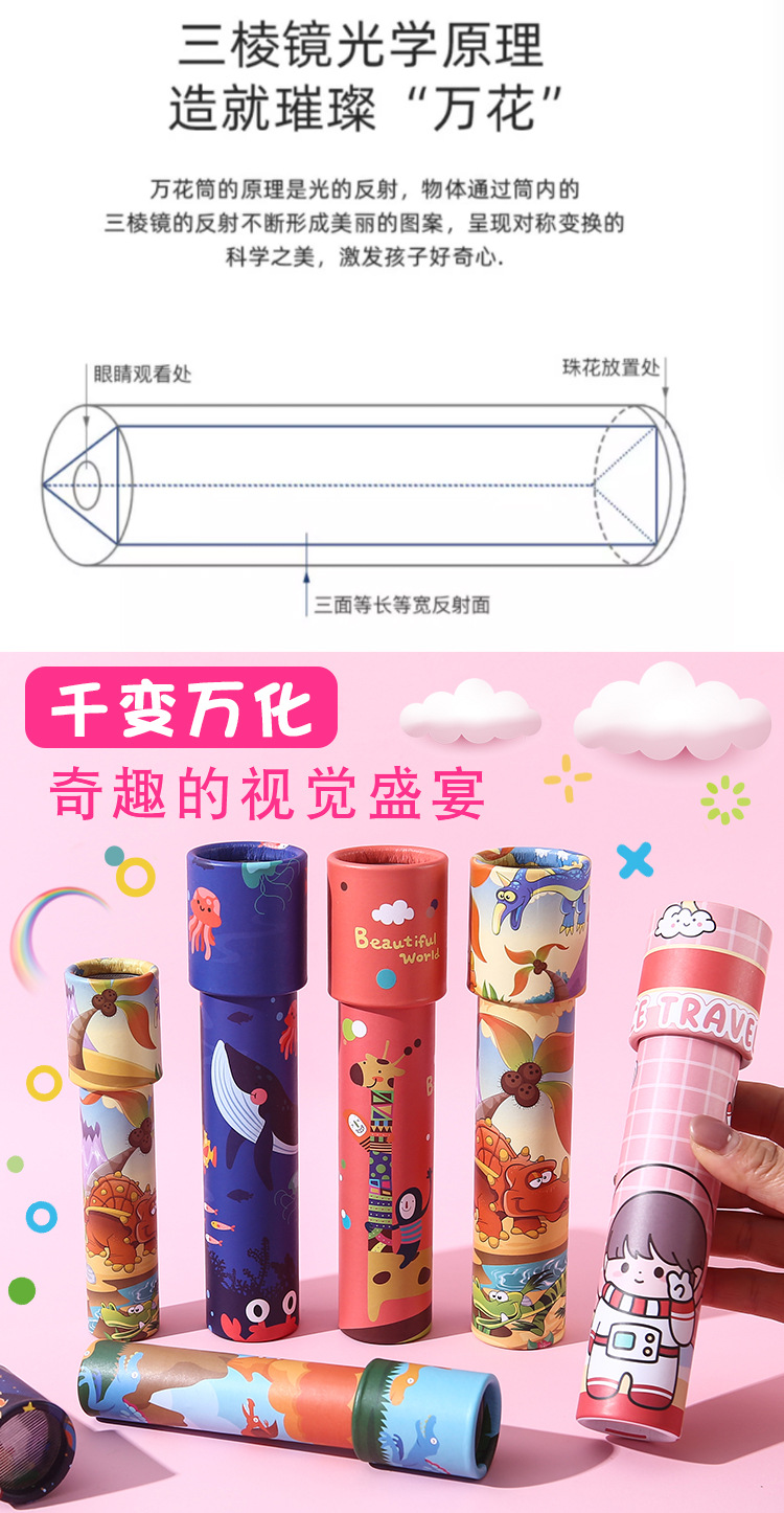 漫画万華鏡児童玩具科学実験多プリズム学生魔法魔幻百変六一益智プレゼント