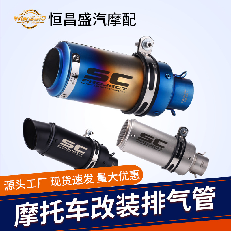 厂家跨境专供摩托车SC圆筒改装排气管春风碳纤纹尾不锈钢排气管