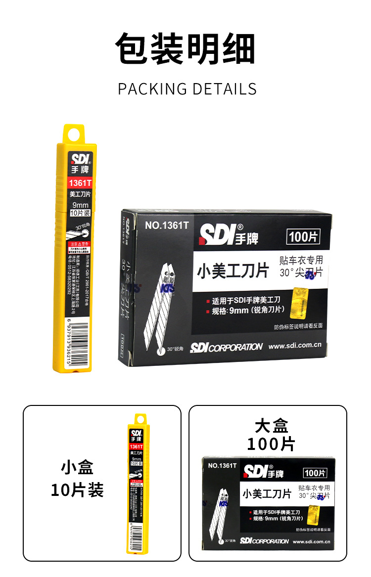 純正品sdi手札1361小美工ブレード合金鋼30度尖角自動車フィルム9mm小裁断刃