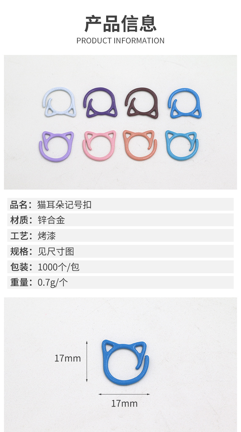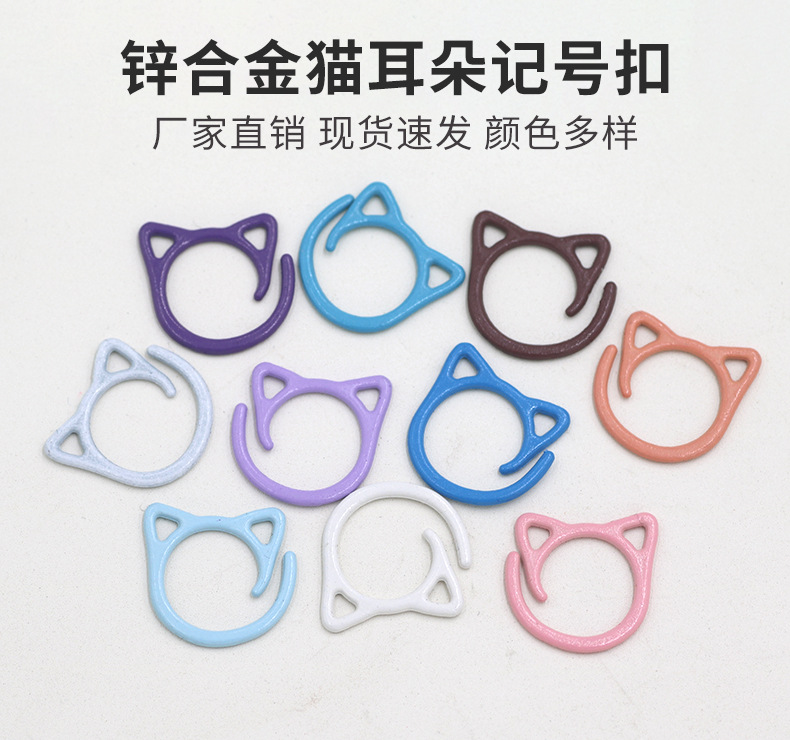 毛线编织钩环针记号扣 开口螺旋彩色猫耳朵金属烤漆记号扣 小别扣