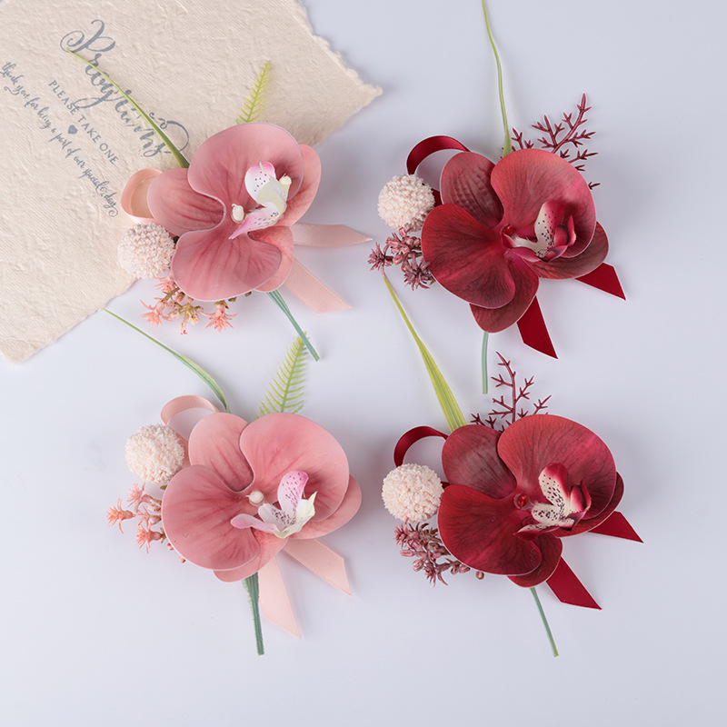 蝴蝶兰全套父母襟花户外婚礼新郎新娘胸花伴娘手腕花商务会议庆典