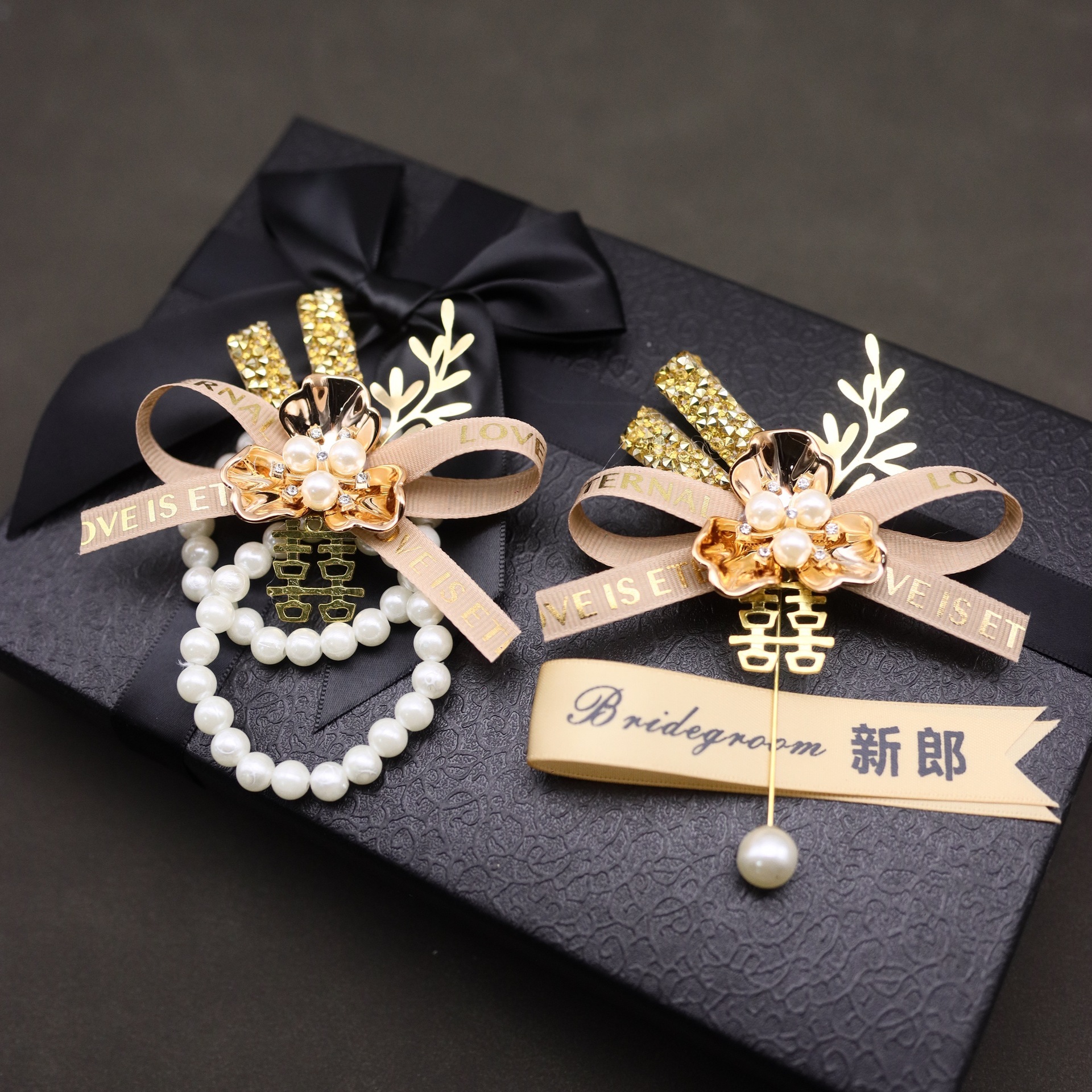 胸花婚礼全套新郎新娘结婚襟花父母伴郎伴娘别花胸针婚庆用品厂家