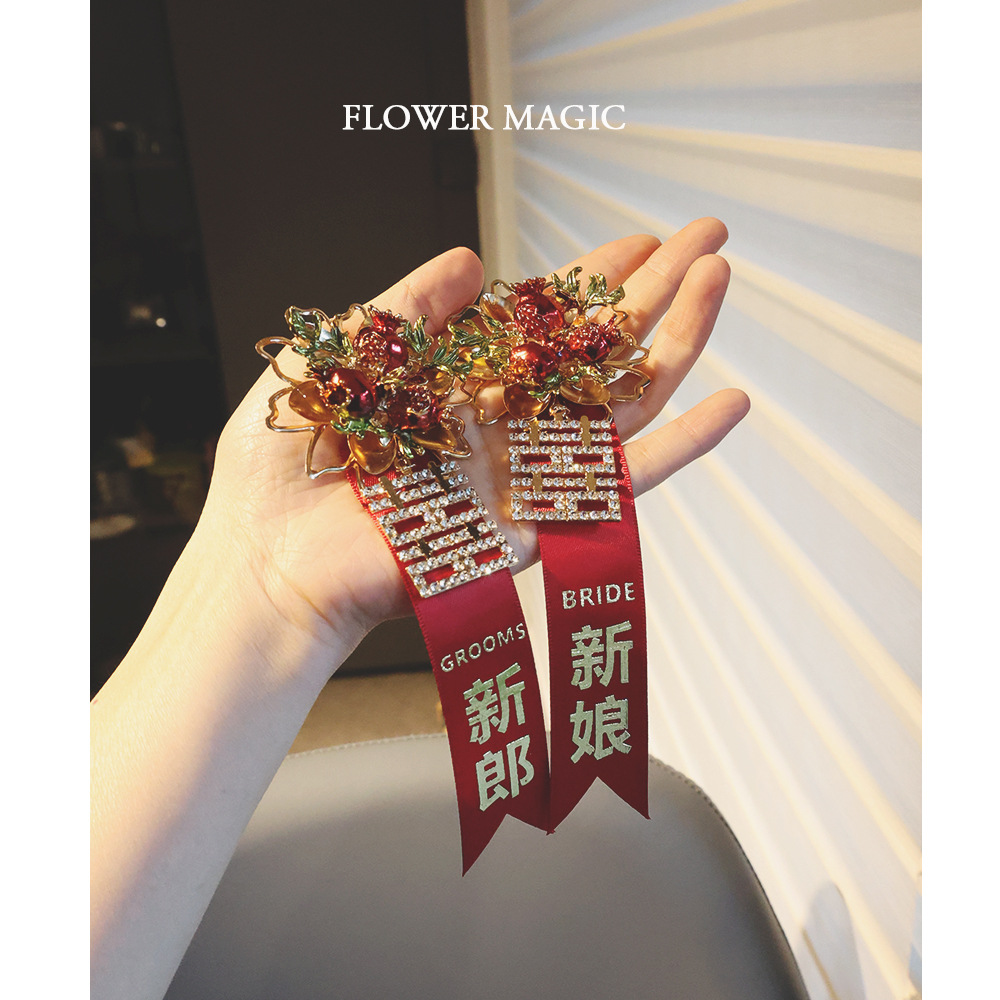 新商品中国式ドリル双喜ザクロ多子多福おめでたい赤い結婚式新郎新婦両親胸花