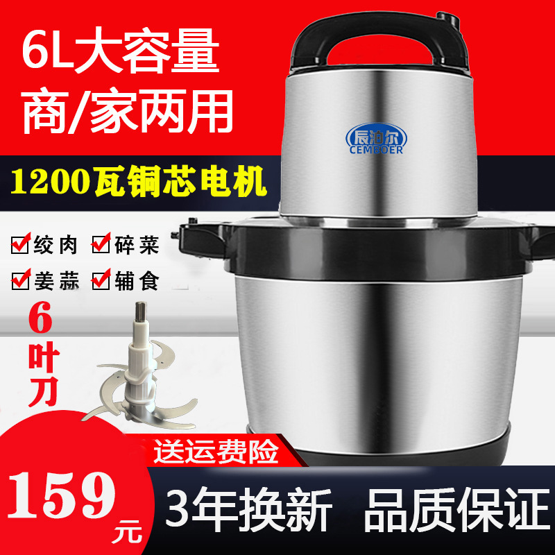 6リットル電動ウインチ商用大容量菜にんにく蓉攪拌と麺肉丸家庭用電動ステンレス肉機