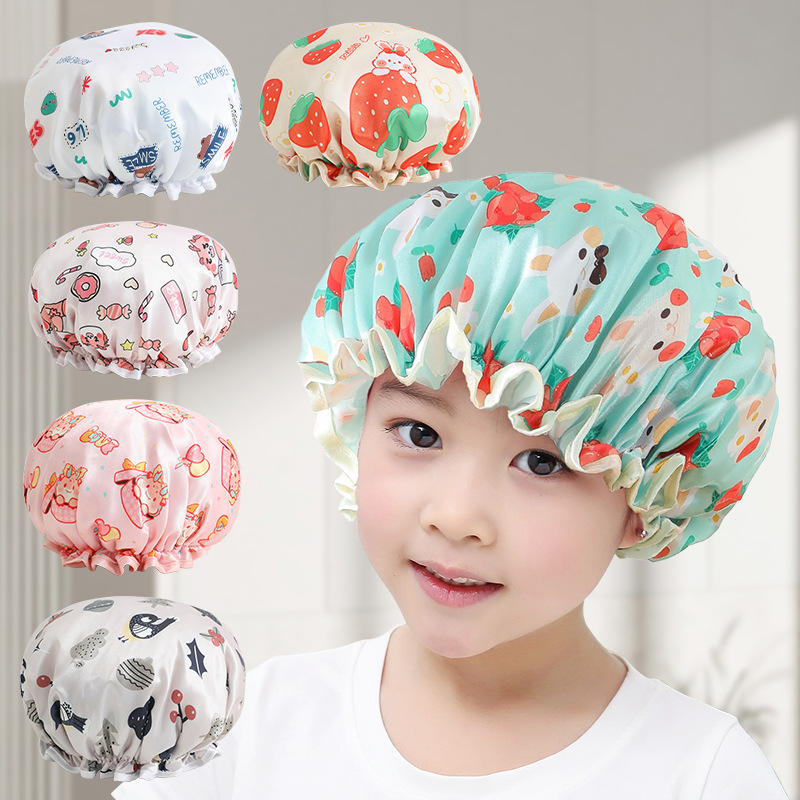 子供の二重シャワーキャップ女性の厚い防水シャワー赤ちゃんの女性の頭の帽子漫画かわいいシャワーキャップ
