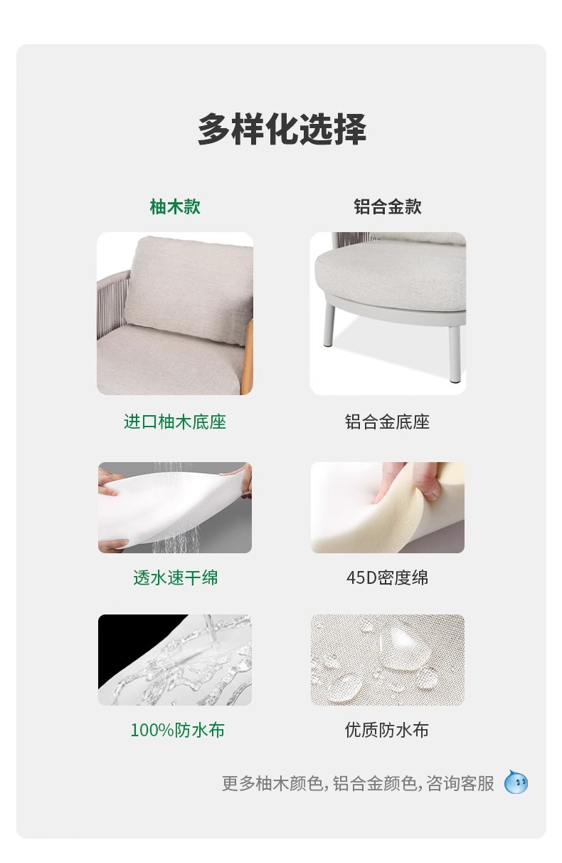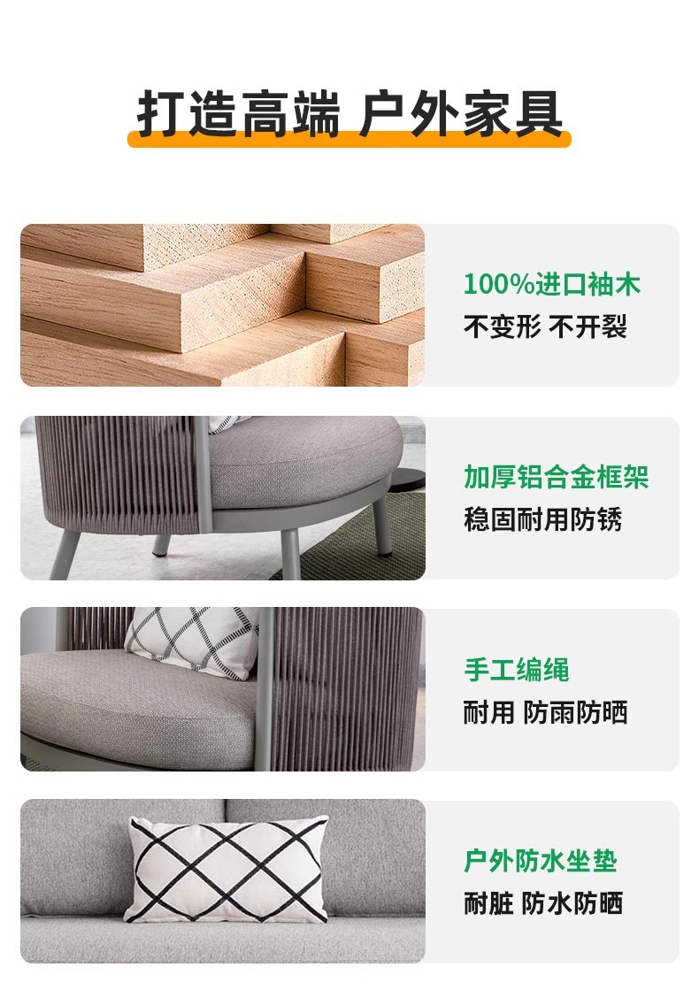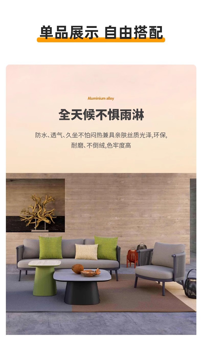 屋外ソファーアルミ合金防雨日焼け止め庭別荘ホテルバルコニーソファーチェア屋外露天組み合わせ家具