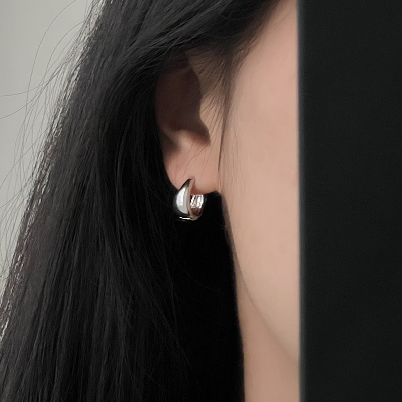 素輪イヤリング925銀針耳輪女性シンプルins冷たい風耳ボタン耳骨釘欧米高級円耳飾り