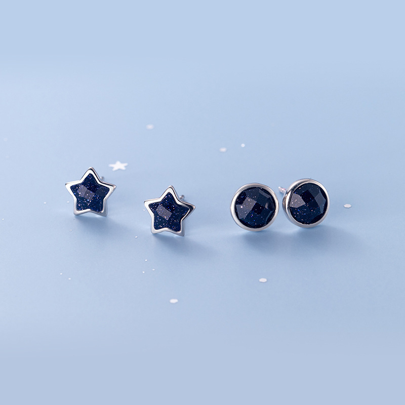 S925銀針幾何学ピアス紫金沙男女カップルイヤリングヒップホップ五角星円形韓国版個性耳飾り