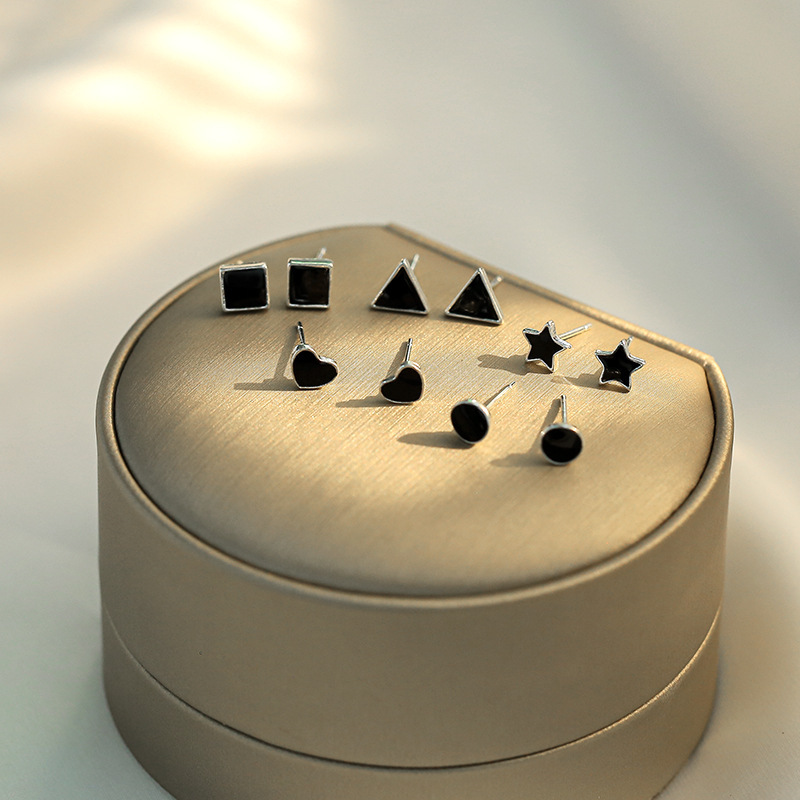 S925純銀黒個性幾何学ミニピアス基礎男女方形円形三角形愛耳骨