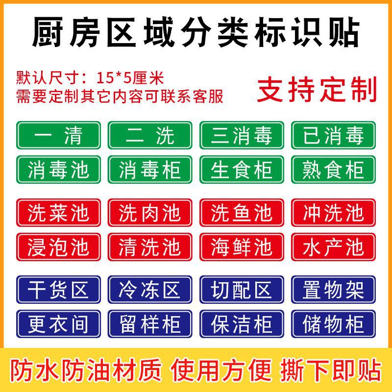 シンク分類識別マーク、洗浄1回、洗浄2回、消毒3回、キッチン防水・耐油衛生検査ヒントステッカー