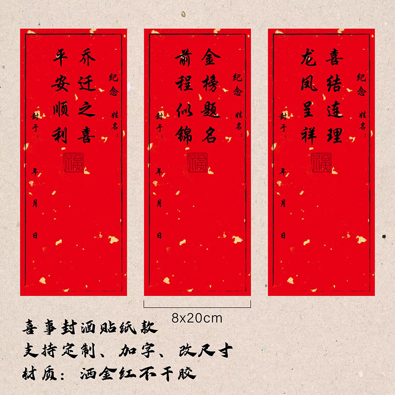1歳のワインシール、金と赤の粘着ラベル、新築祝い、100日ワインシール、祝福の言葉、商標ロゴはカスタマイズ可能