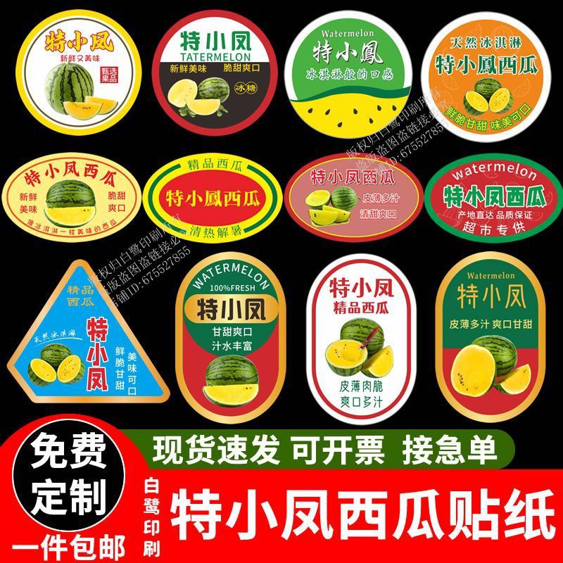 特小峰スイカラベルステッカー台湾小スイカ黄色の果肉レインボーアイスクリームスイカ自己粘着商標D製