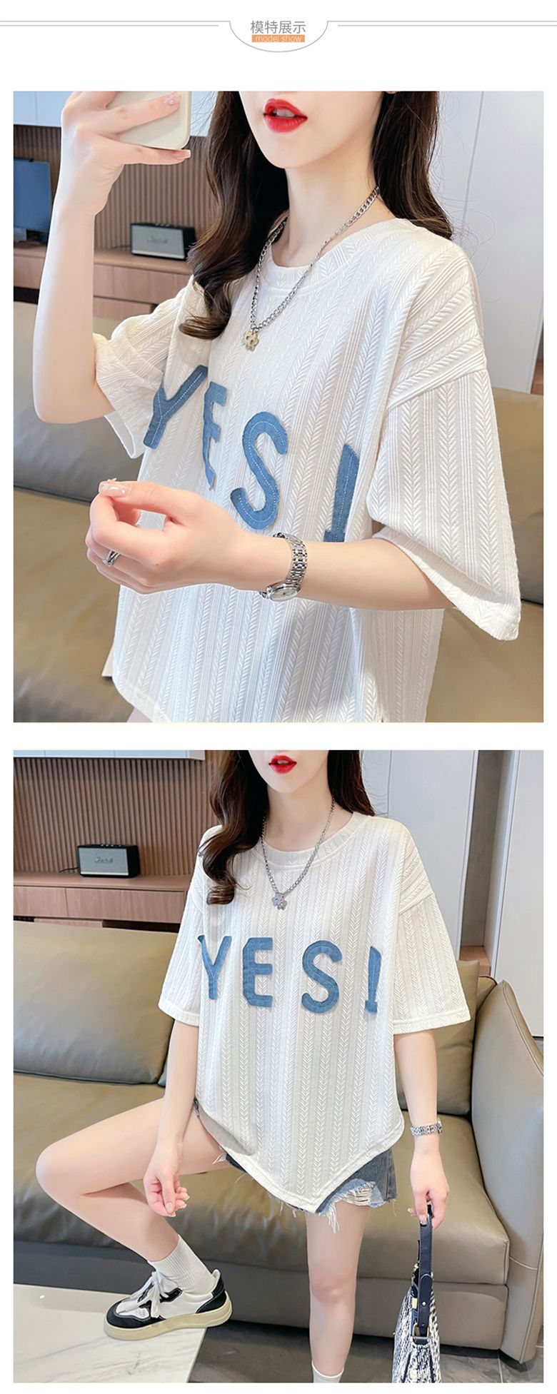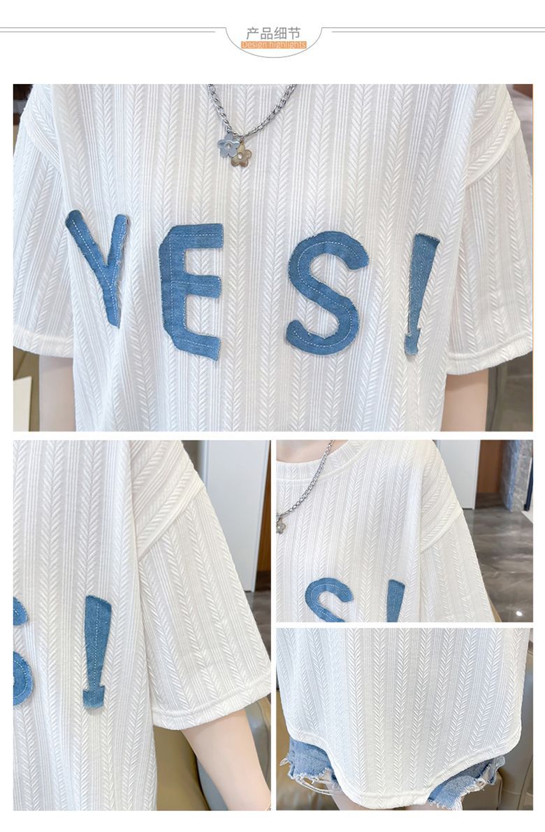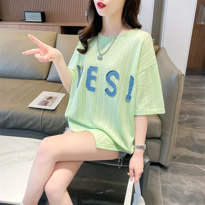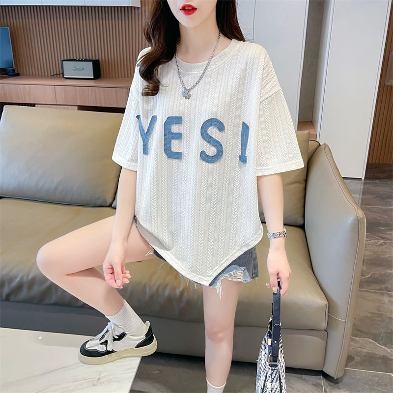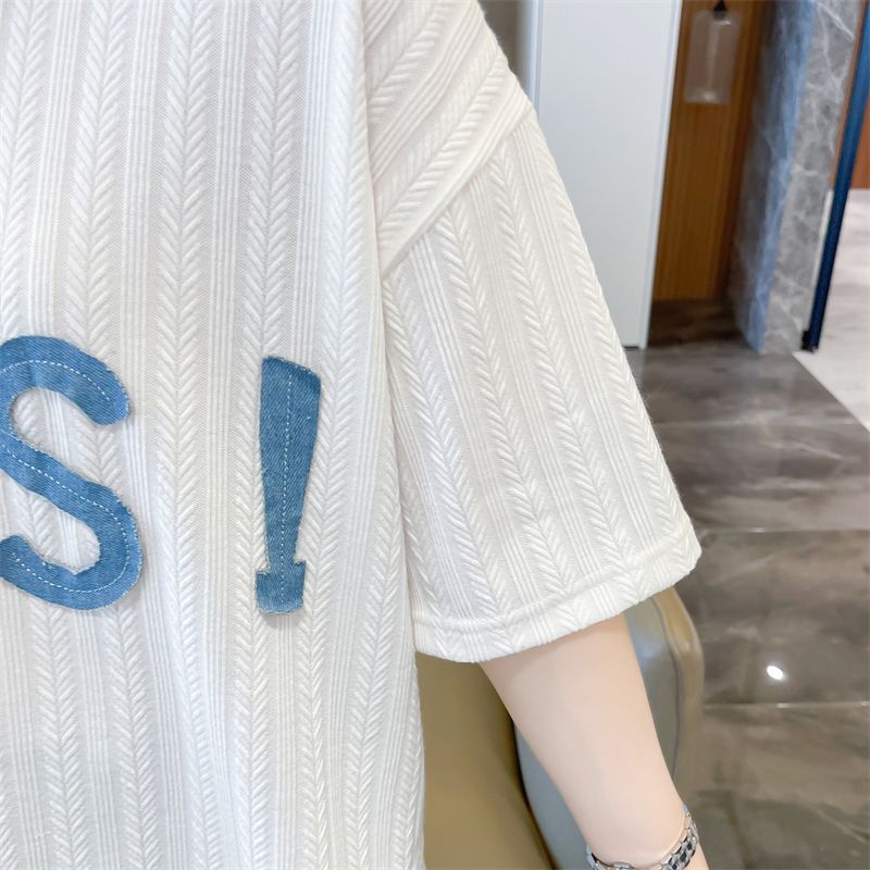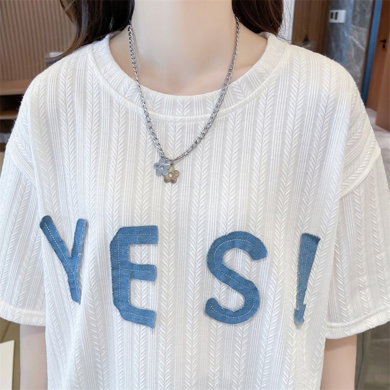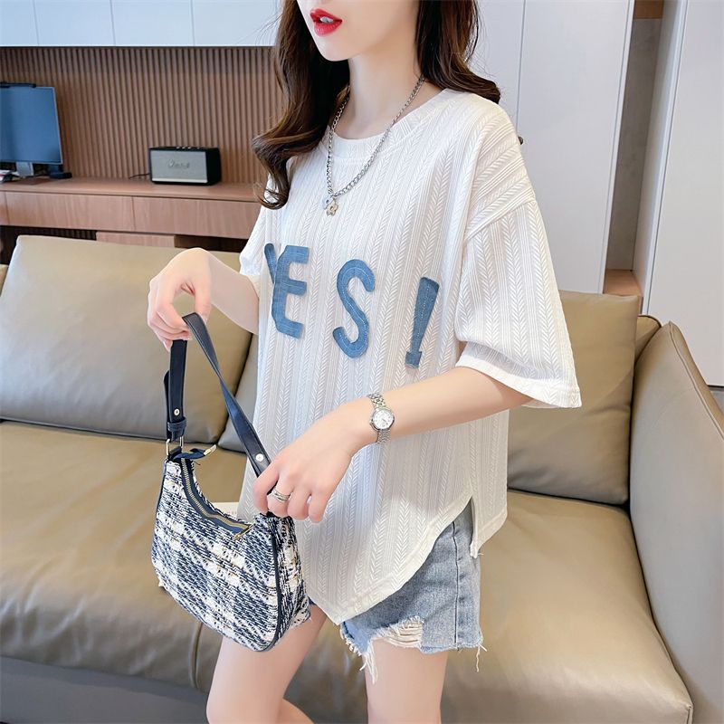 デニムtシャツレディース半袖ゆるいデザイン感アルファベットジャカード高級感インスタ夏の薄いラウンドネックトップスレディースファッション