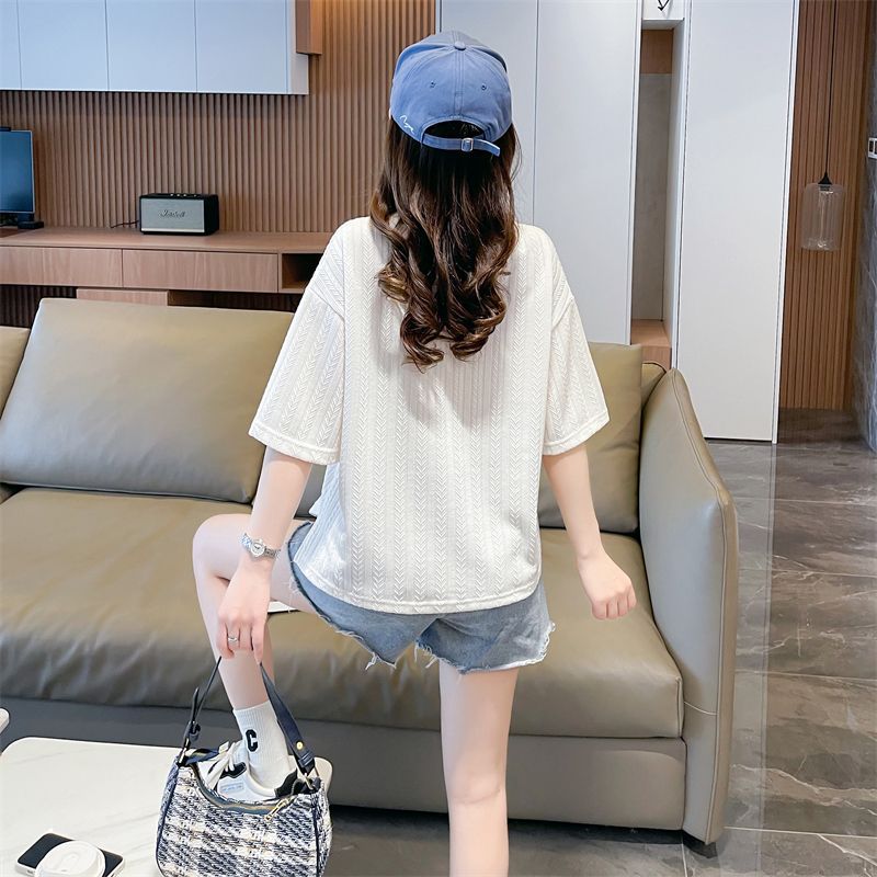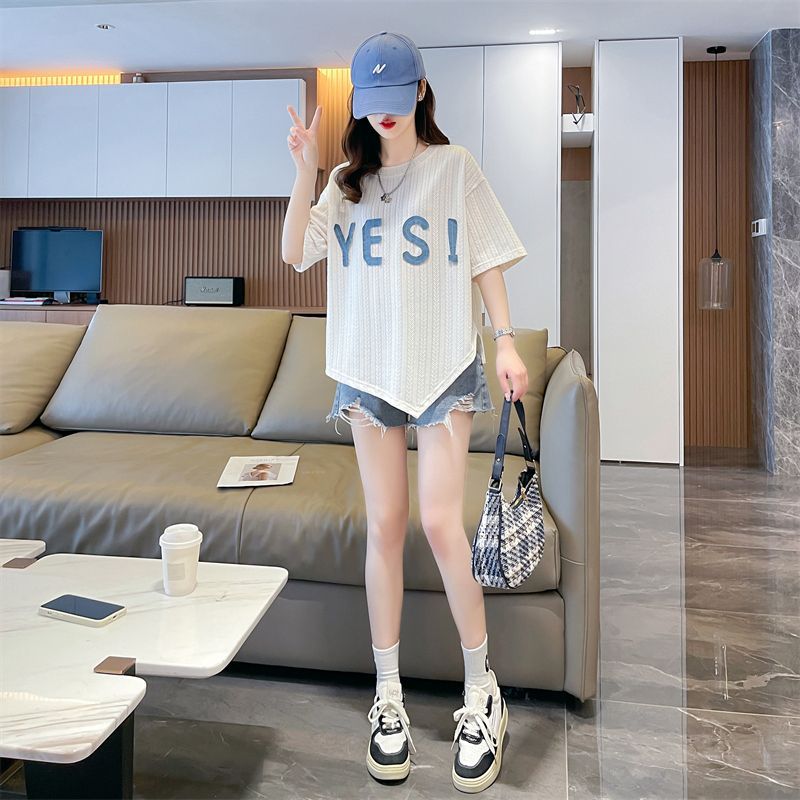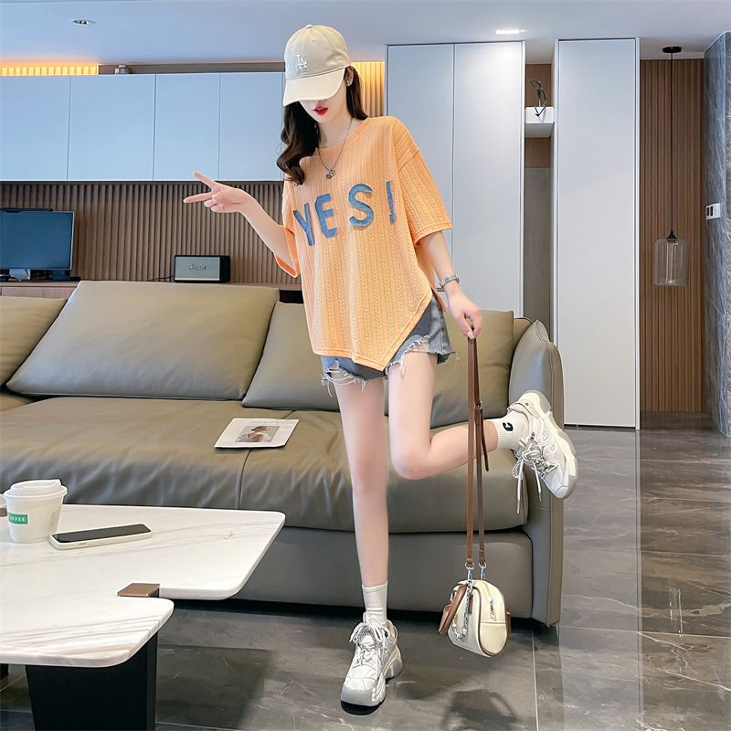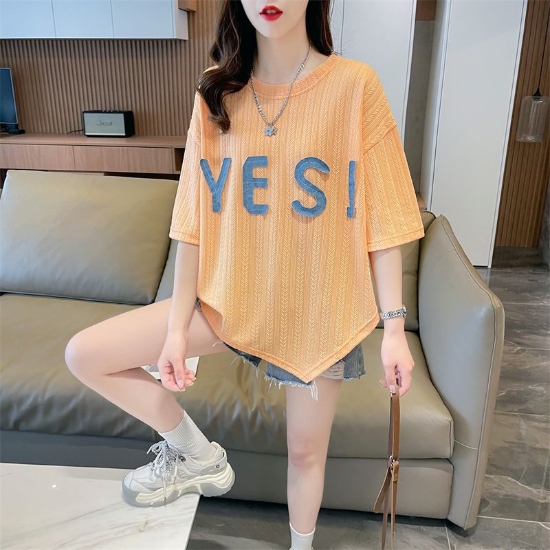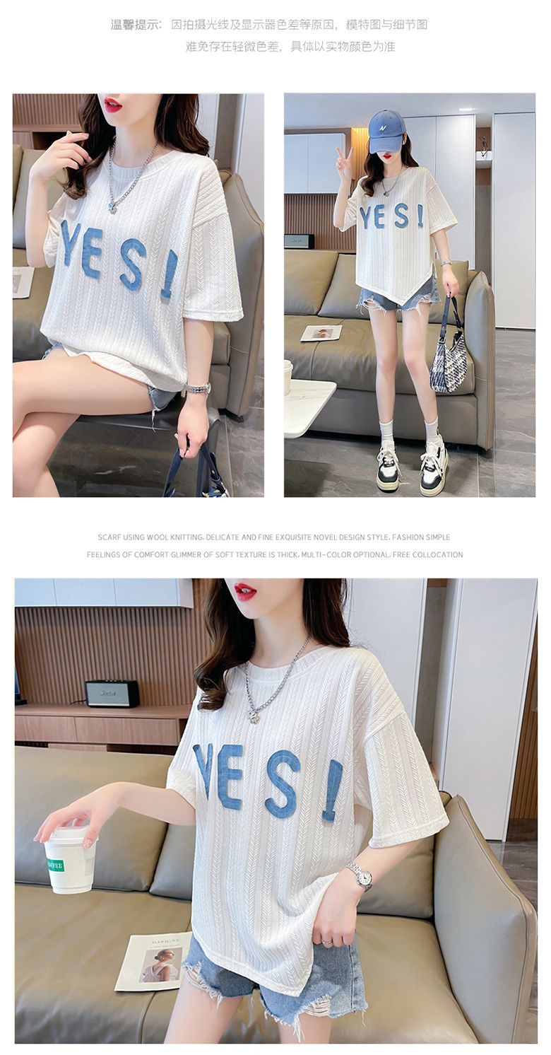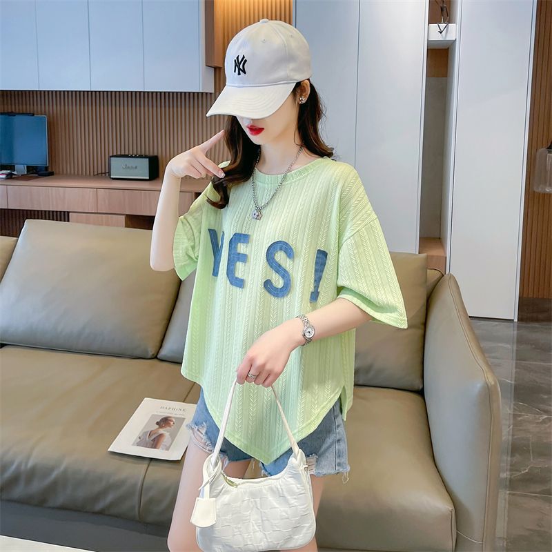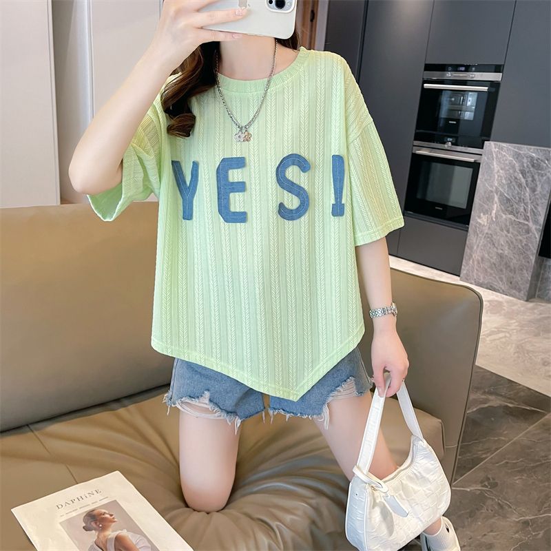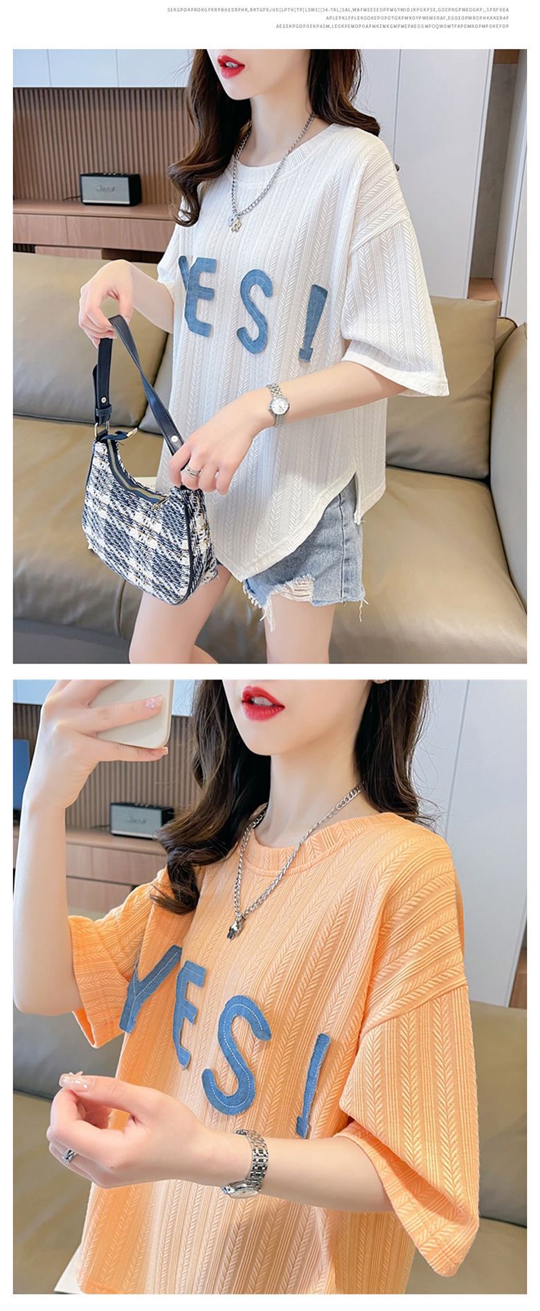 デニムtシャツレディース半袖ゆるいデザイン感アルファベットジャカード高級感インスタ夏の薄いラウンドネックトップスレディースファッション