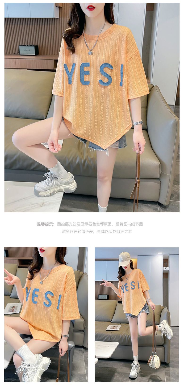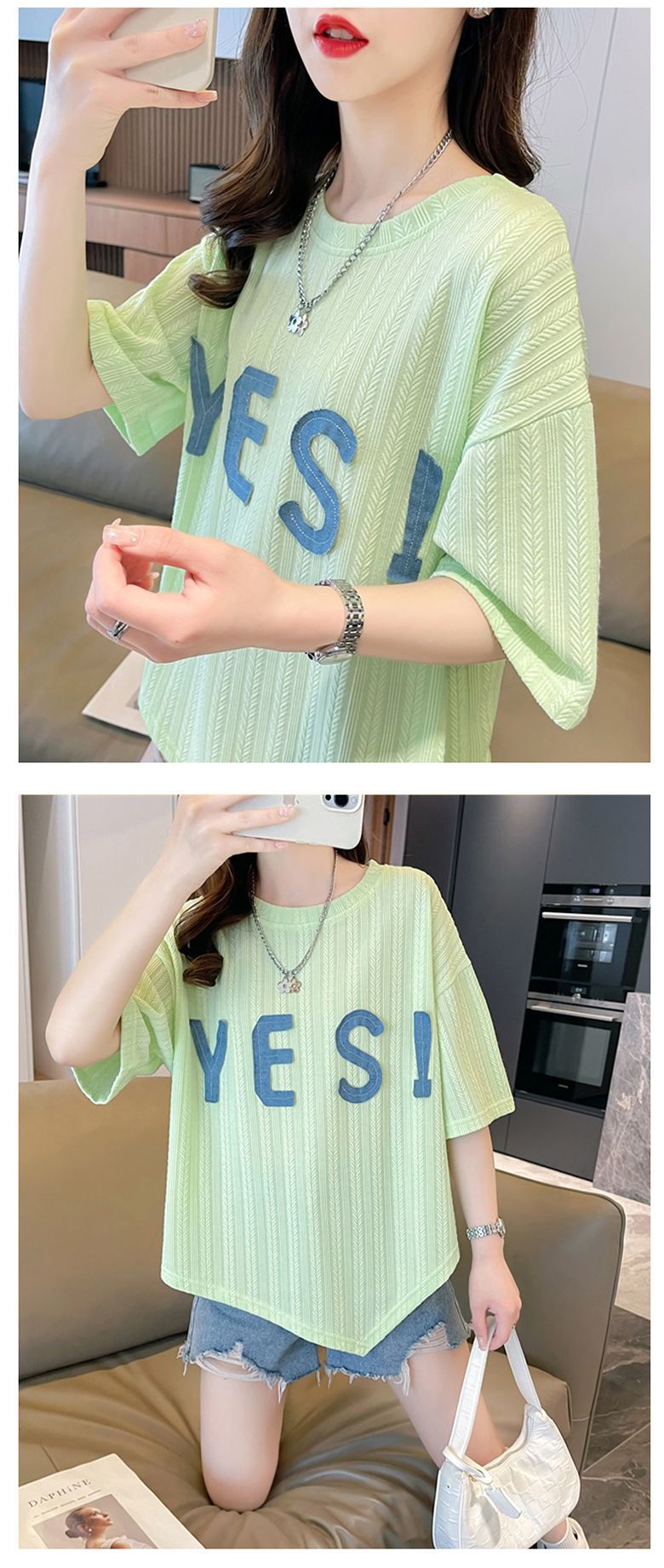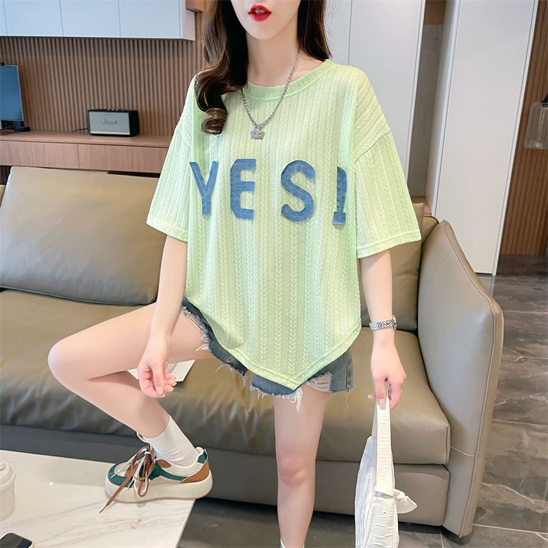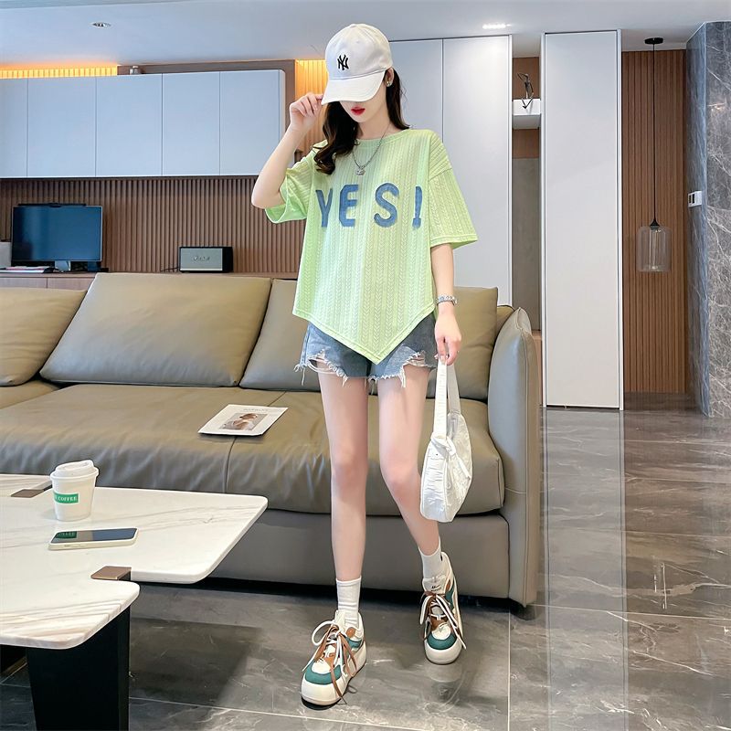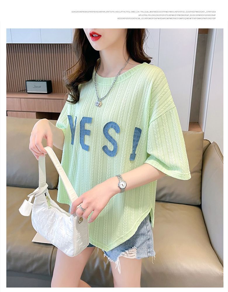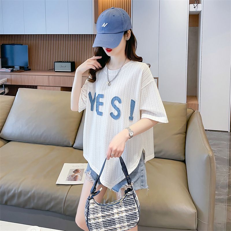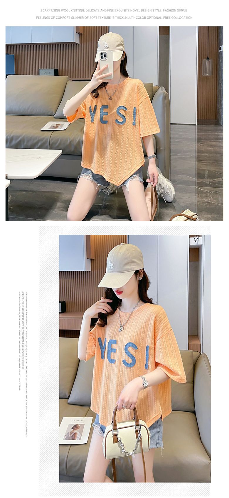 デニムtシャツレディース半袖ゆるいデザイン感アルファベットジャカード高級感インスタ夏の薄いラウンドネックトップスレディースファッション