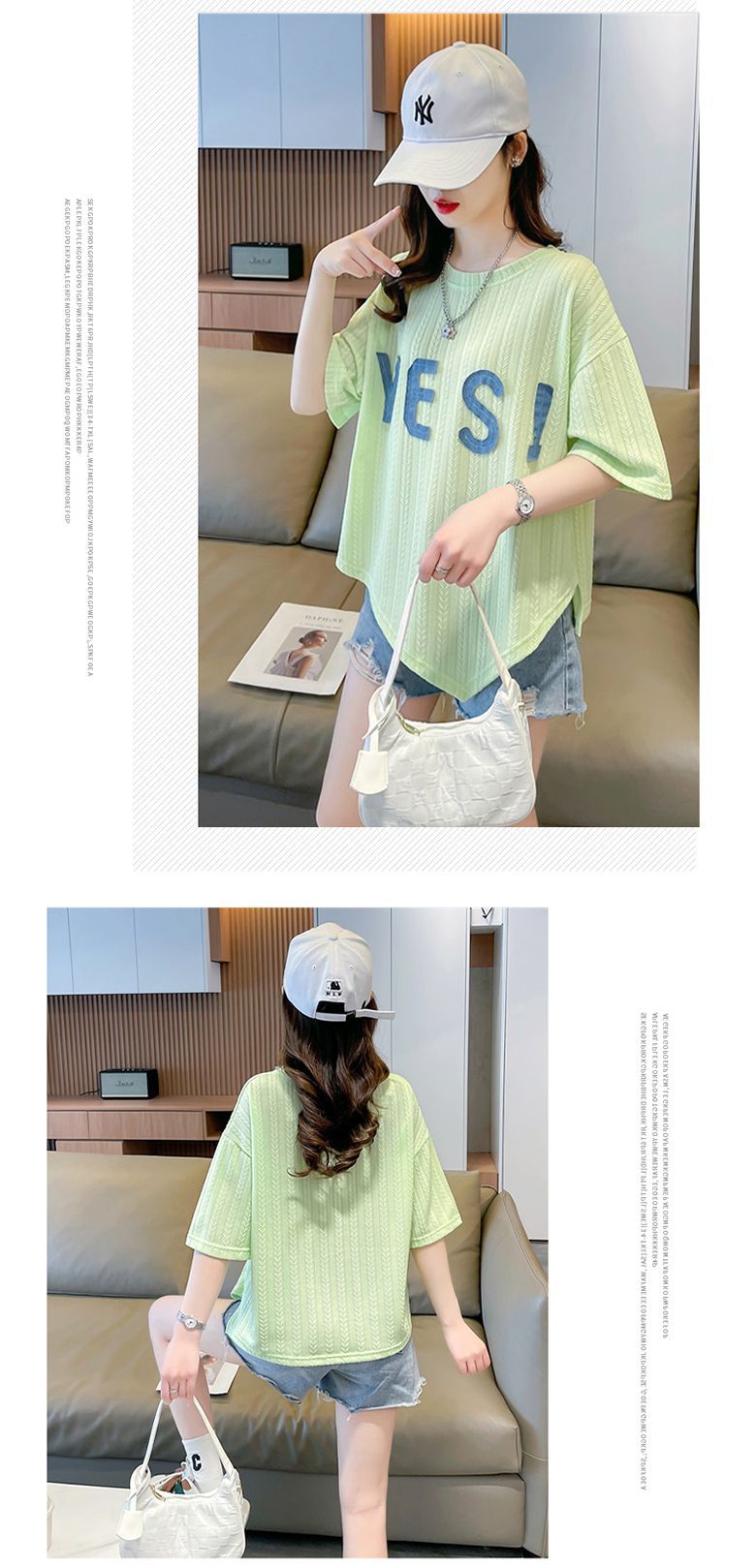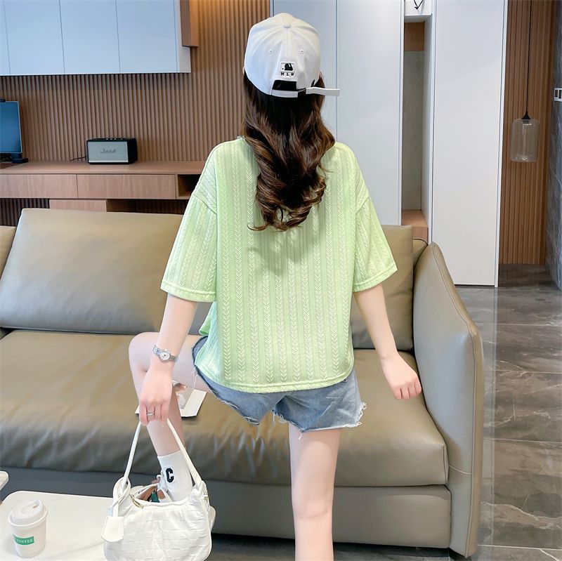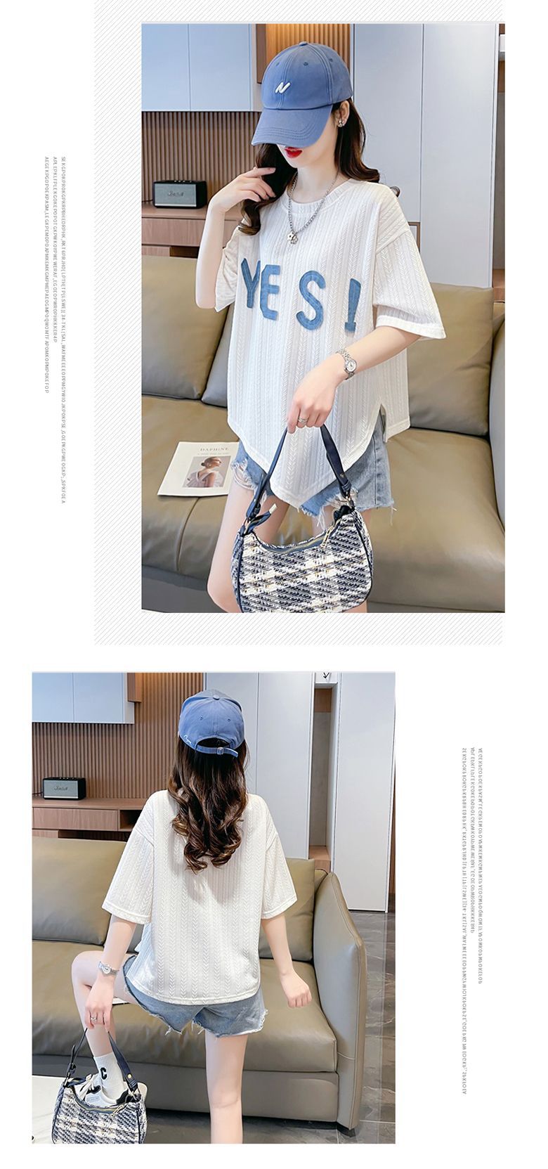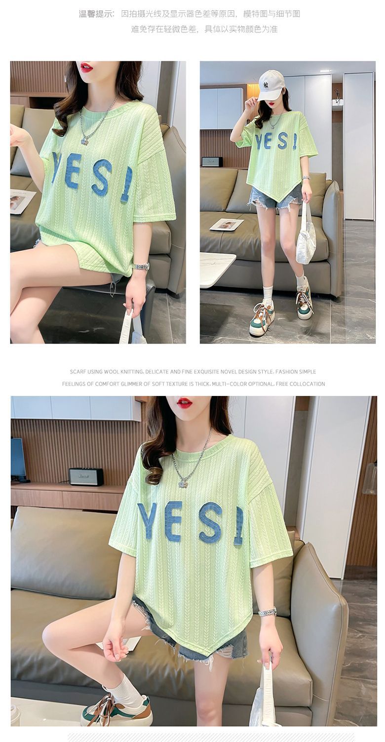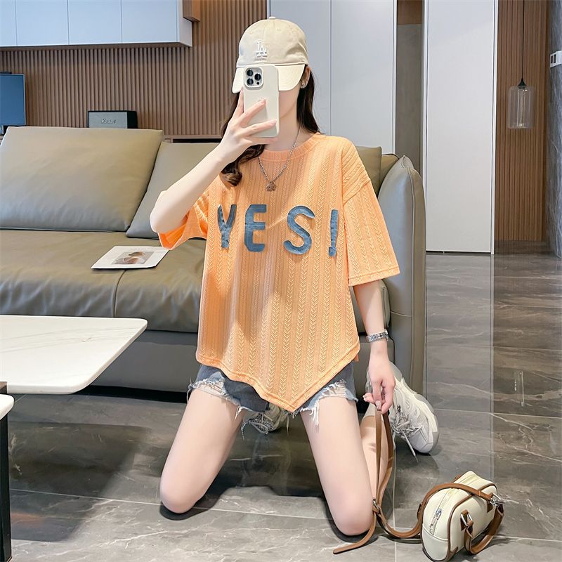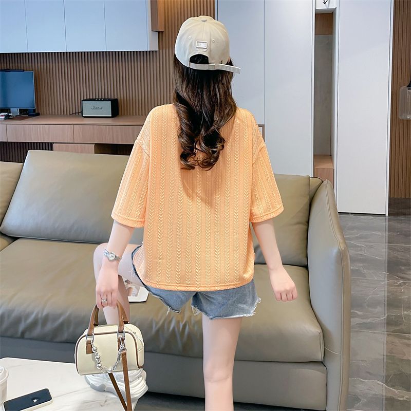 デニムtシャツレディース半袖ゆるいデザイン感アルファベットジャカード高級感インスタ夏の薄いラウンドネックトップスレディースファッション