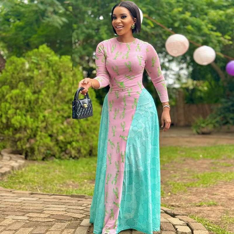 ヨーロッパとアメリカのアマゾンクロスボーダー2025夏対外貿易オフショルダードレススリムフィットスプライシングフィッシュテールロングスカート
