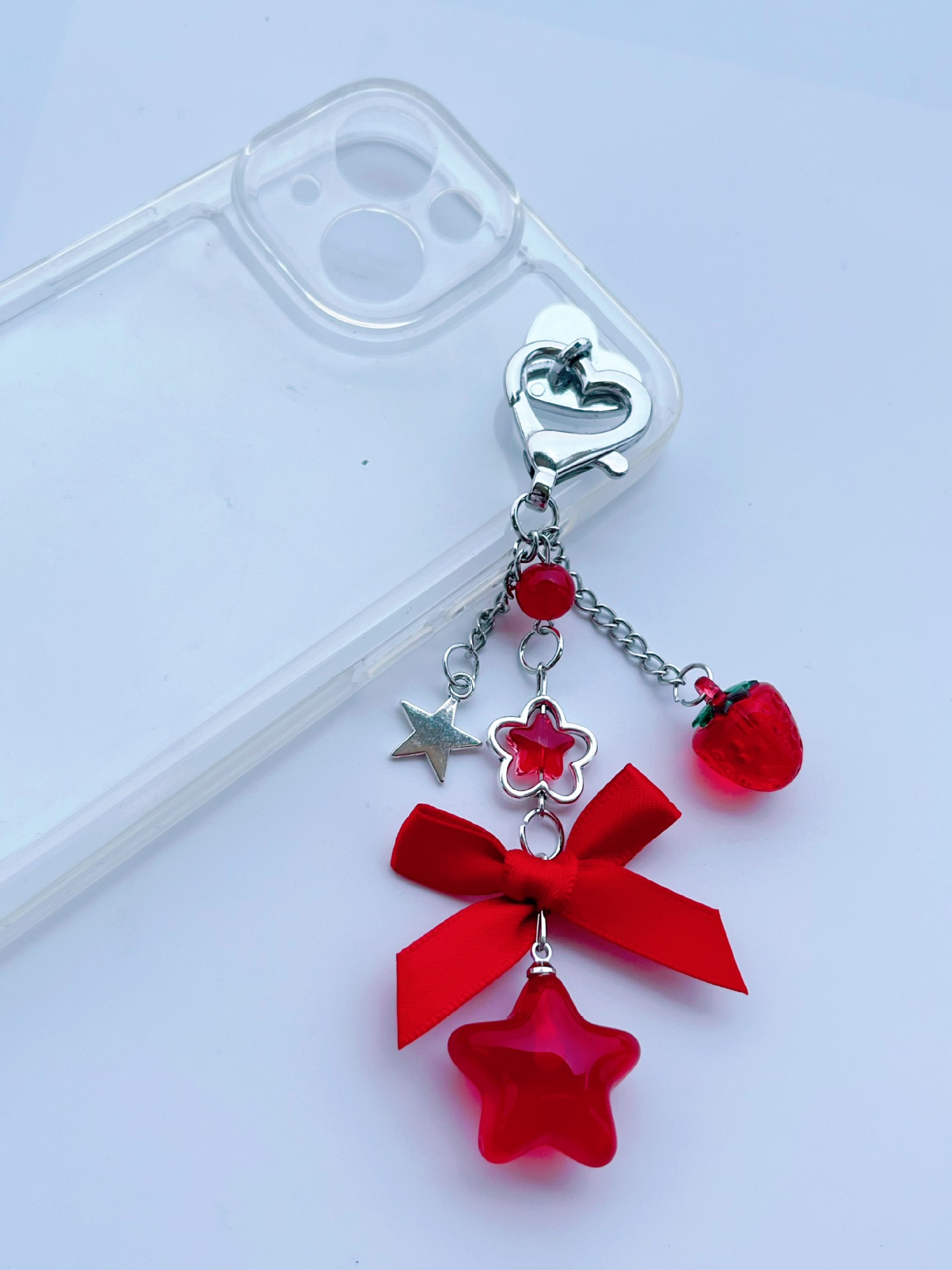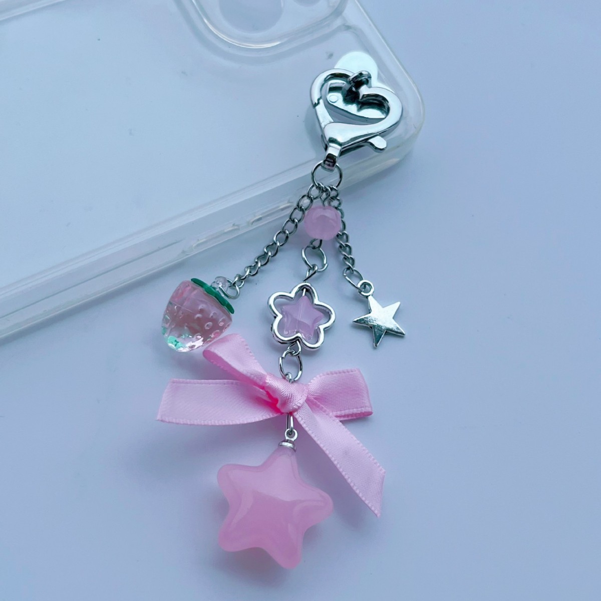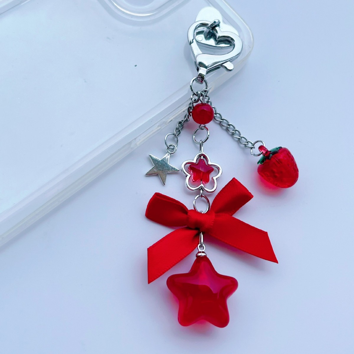 クロスボーダーフラワーファットスタービーズ携帯電話ペンダントY2Kホットガールバッグccdペンダントイチゴリボンキーホルダー