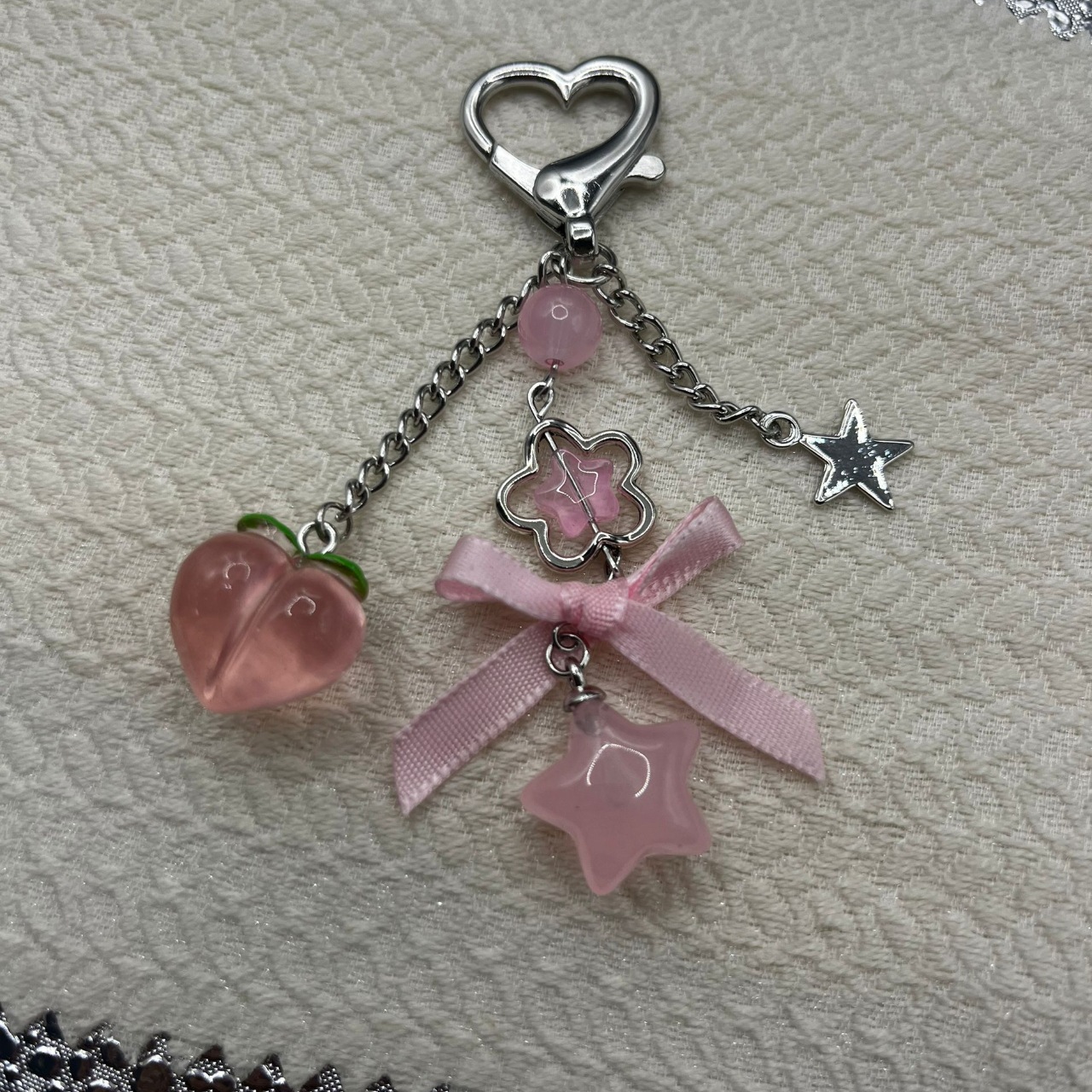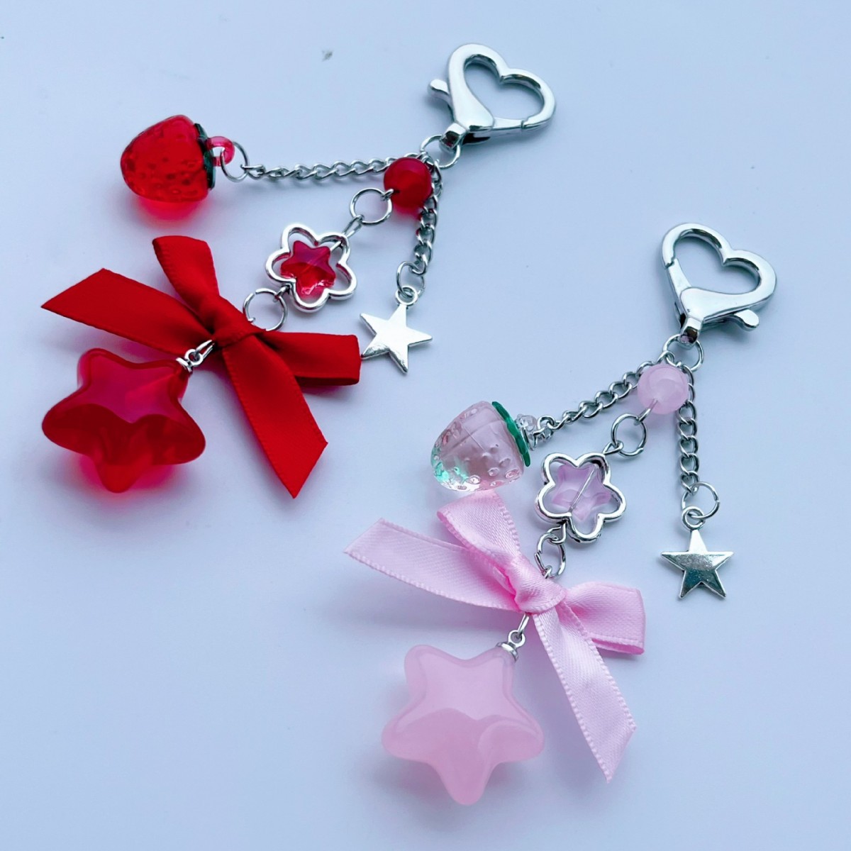 欧米のクロスボーダーの小清新な甘いイチゴの蝶結びのキーホルダーのアイデアinsの花の星はハート型の装飾品を愛します。