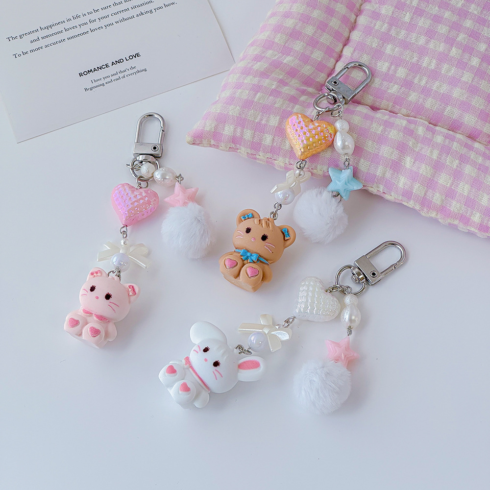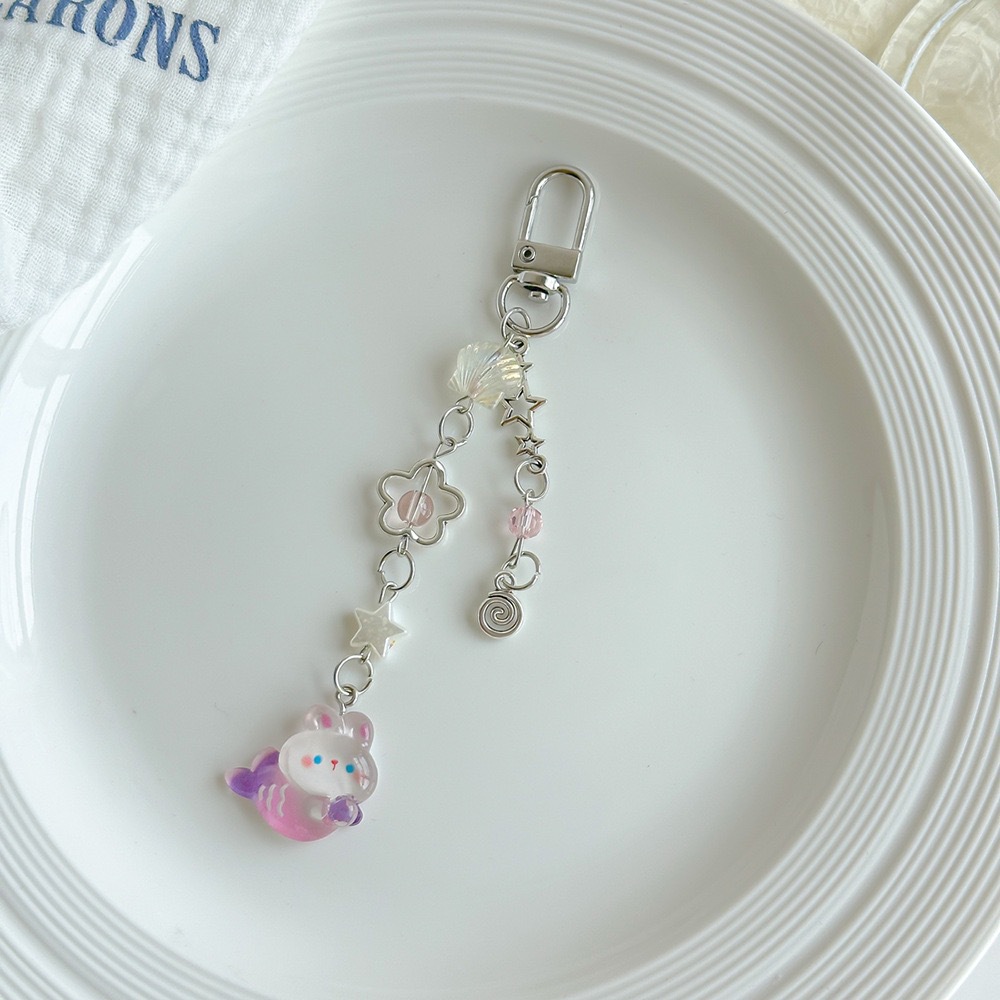 クロスボーダーインかわいい女の子の個性甘い立体ウサギの魚バッグキーホルダービーズスクールバッグ携帯電話吊り下げ