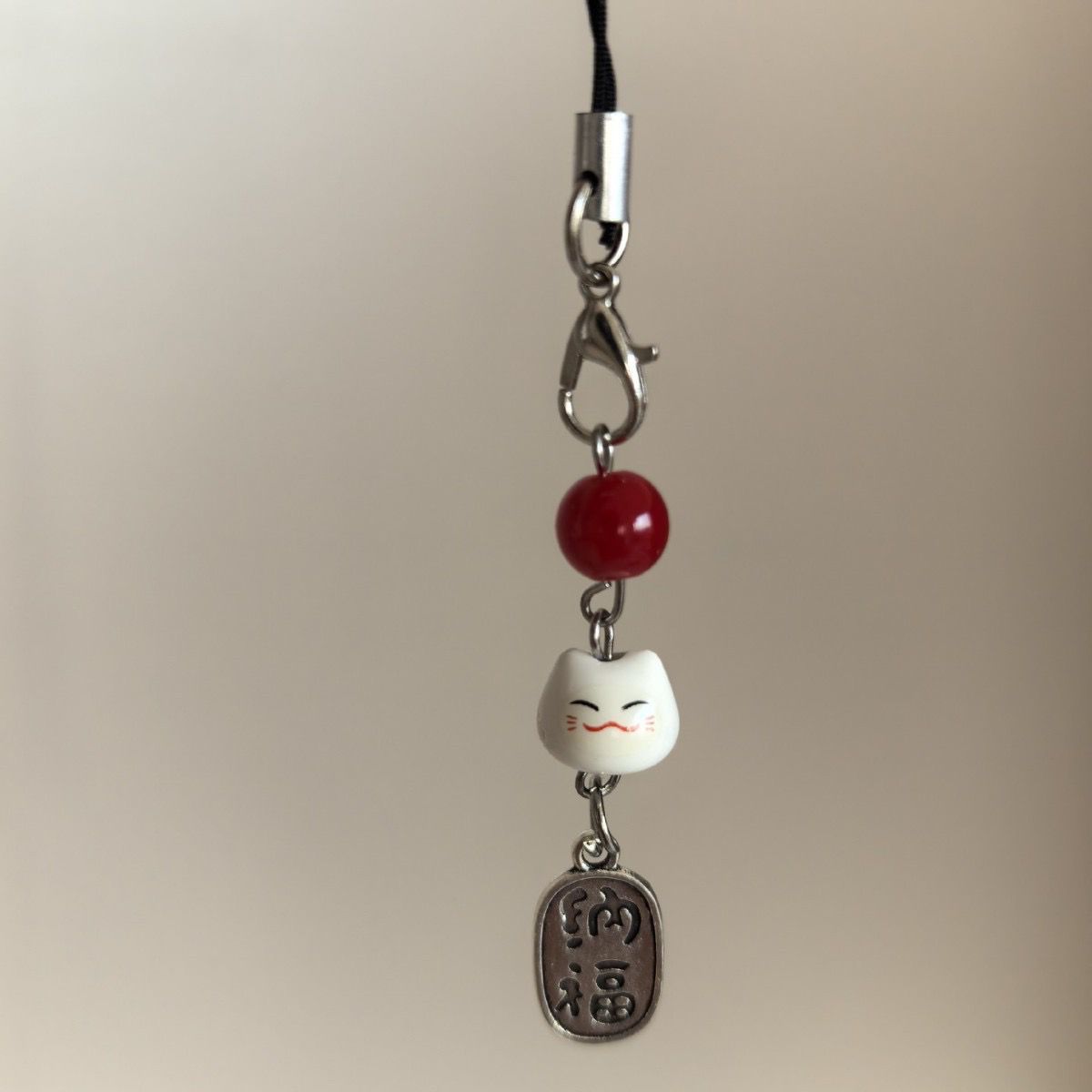【貪欲猫】国潮風招財納福猫招財猫ストラップ携帯チェーンキーホルダー
