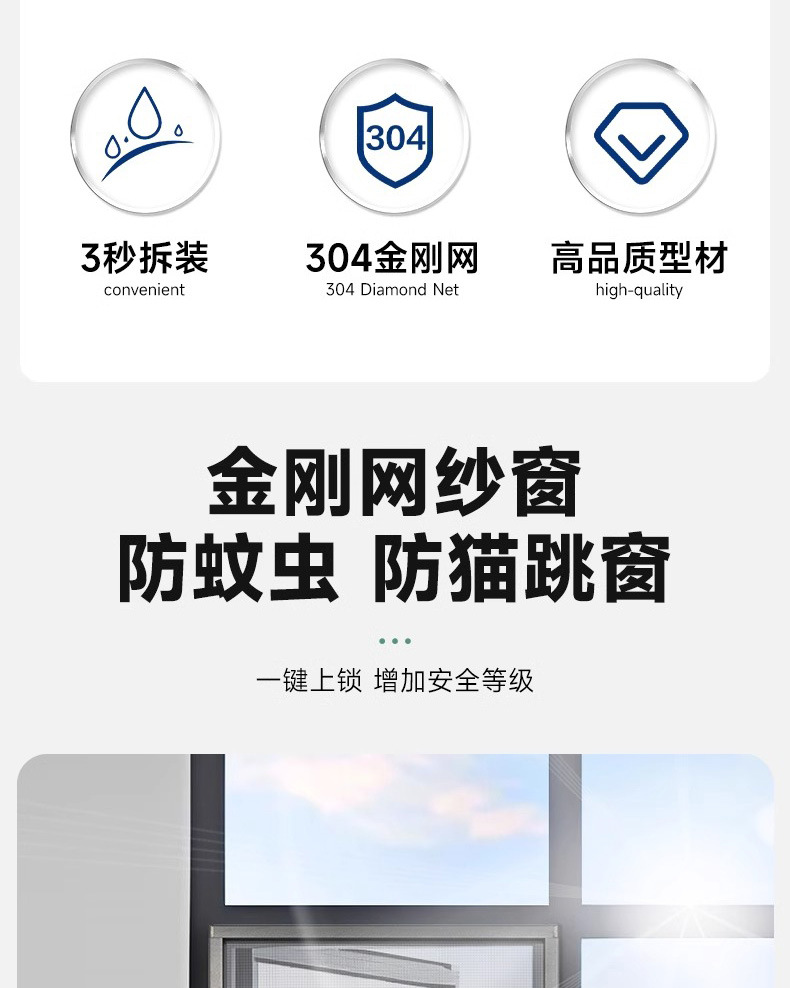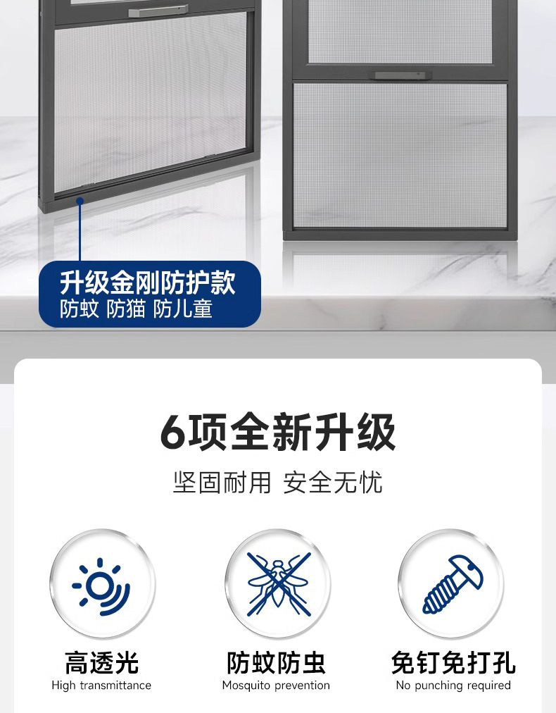 内开窗专用金刚网纱窗免打孔自装家用高透隐形防蚊虫可拆卸纱窗