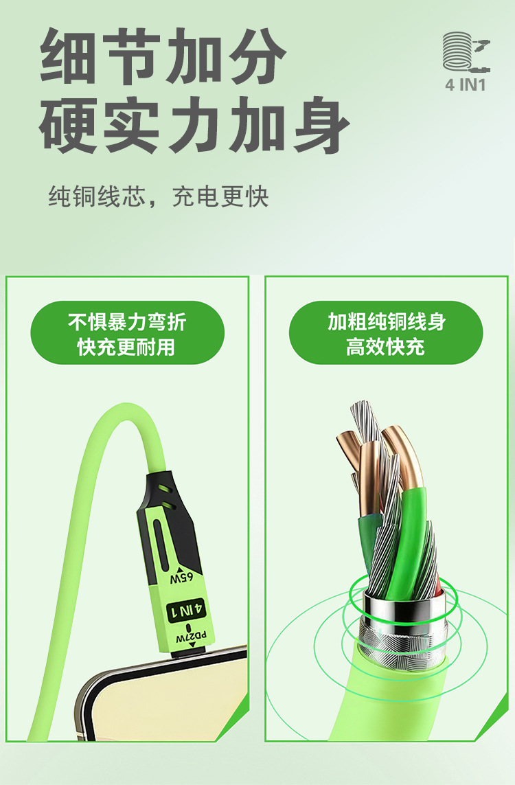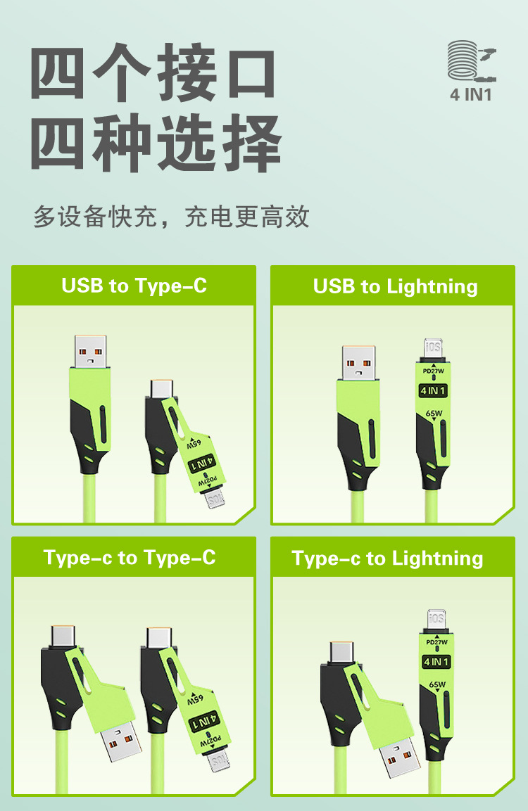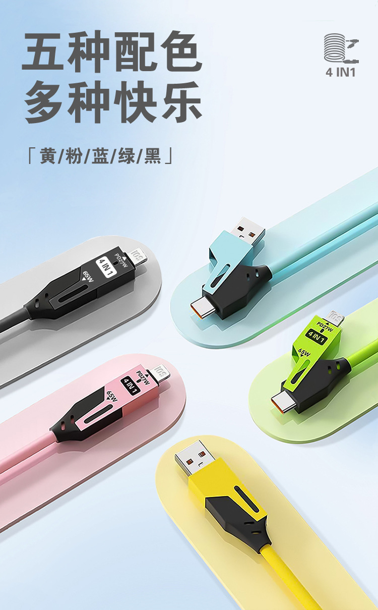 全網低価格四合一バネケーブルはアップルiphone16華為65W車載急速充電ケーブルに適用される.