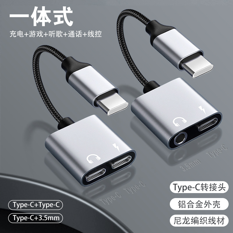 Typec回転3.5二合一イヤホン変換コネクタ適用華為栄光オーディオ変換線充電ケーブル変換器