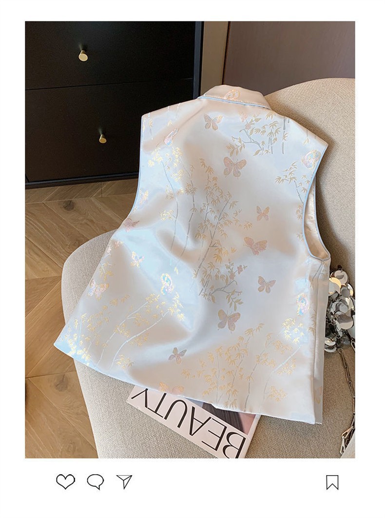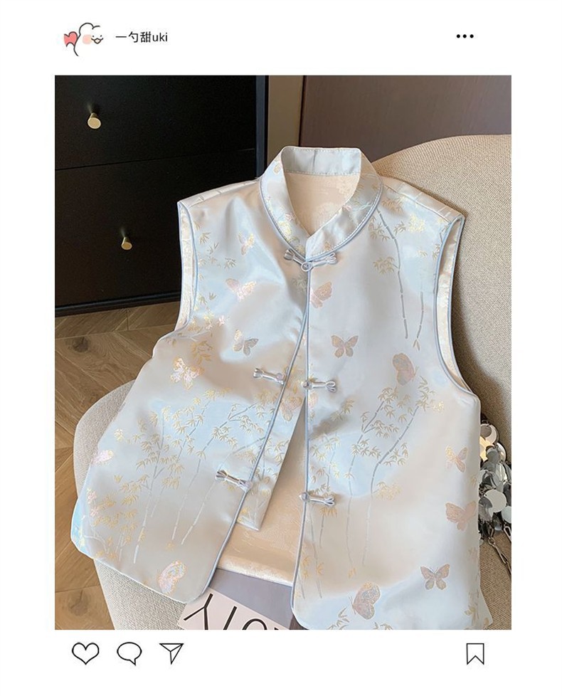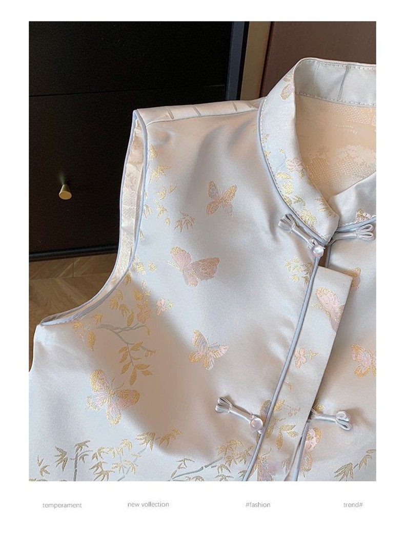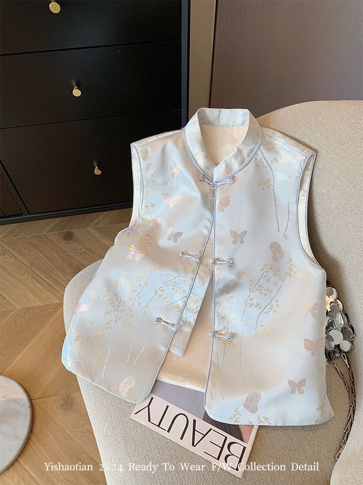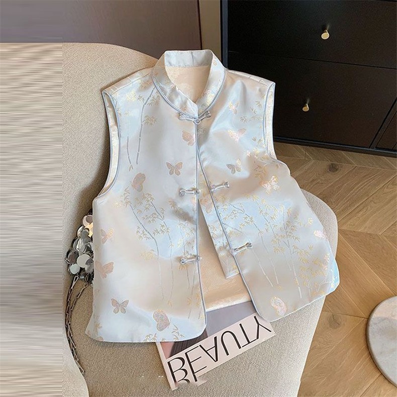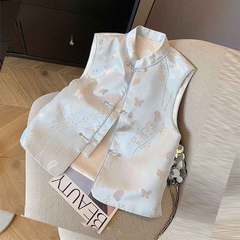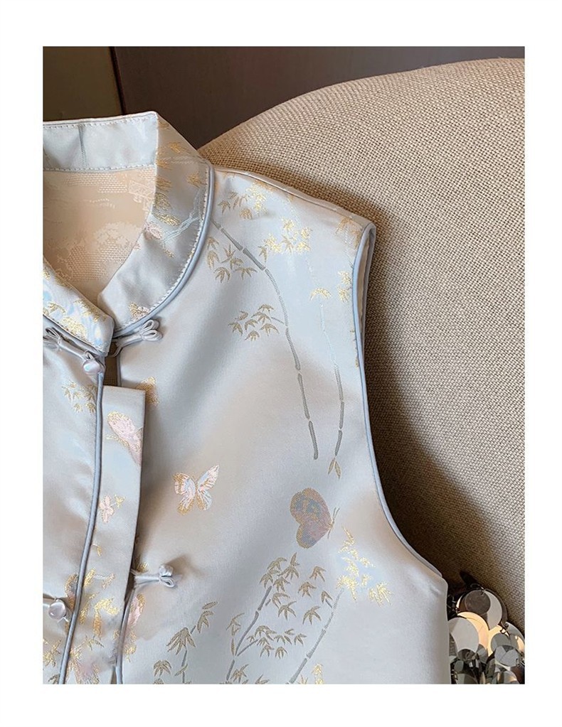 2025春秋モデル国風馬甲新中国式青い蝶刺繍女装高級気質新袖なしベスト