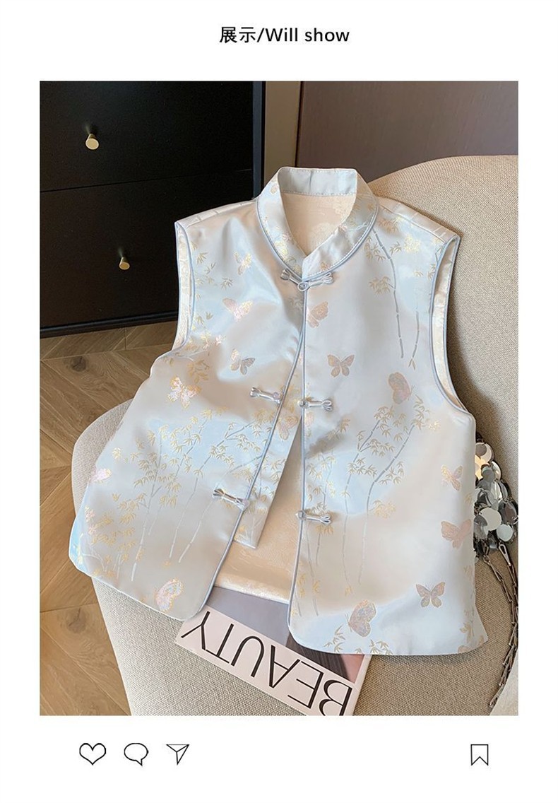 新中国式の国風織錦ジャカードのベストの気質は肩の上着の女性の気質の外でベストの盤を掛けて国の潮の馬の挟みを掛けます。