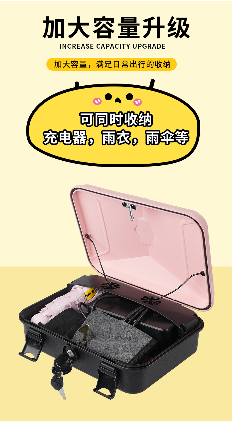 電動自転車改造後、電動バイクのリアボックス、小型収納ボックス、機械式ロック、大容量収納