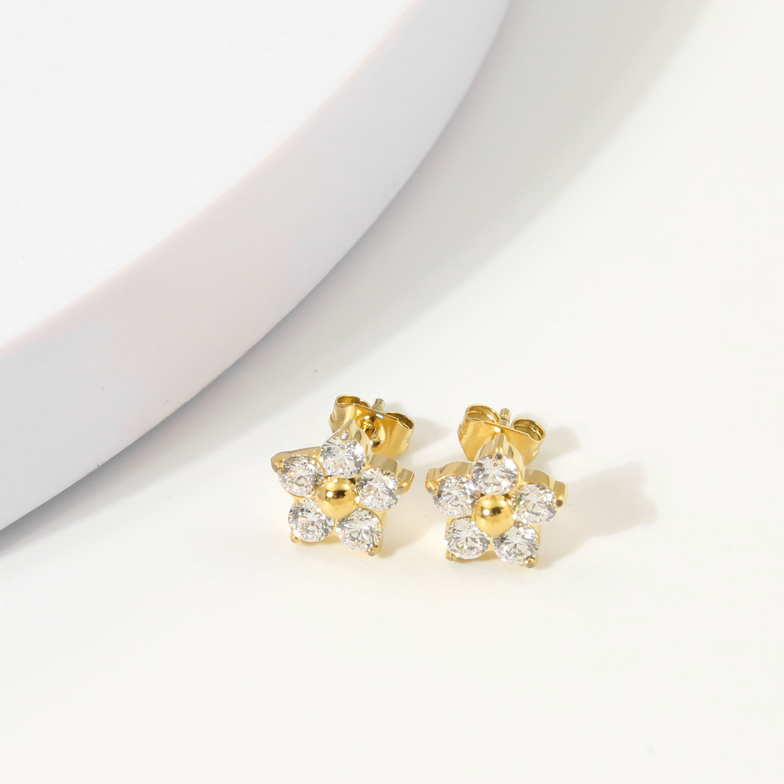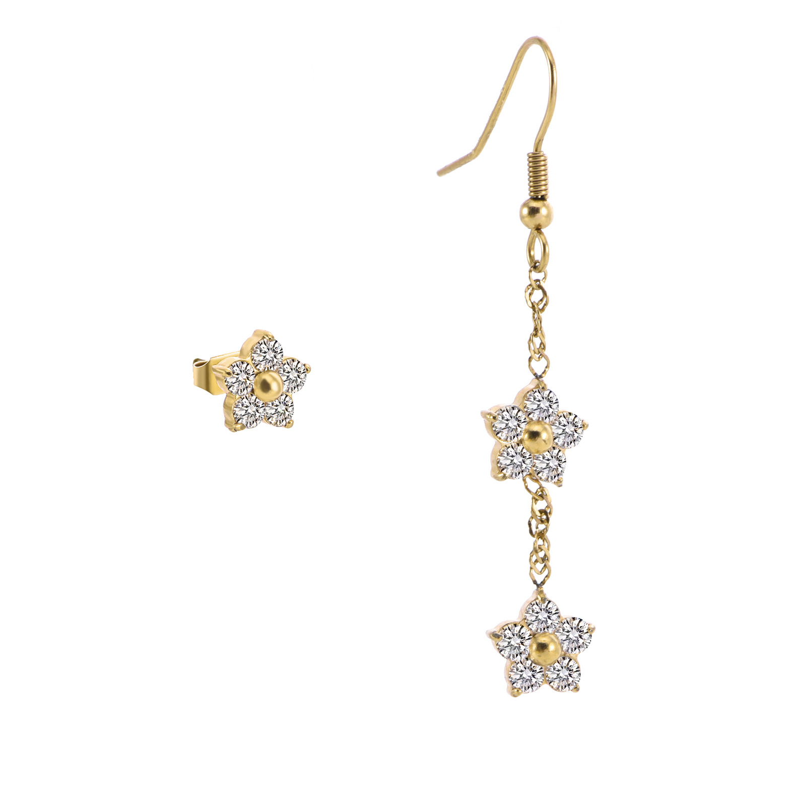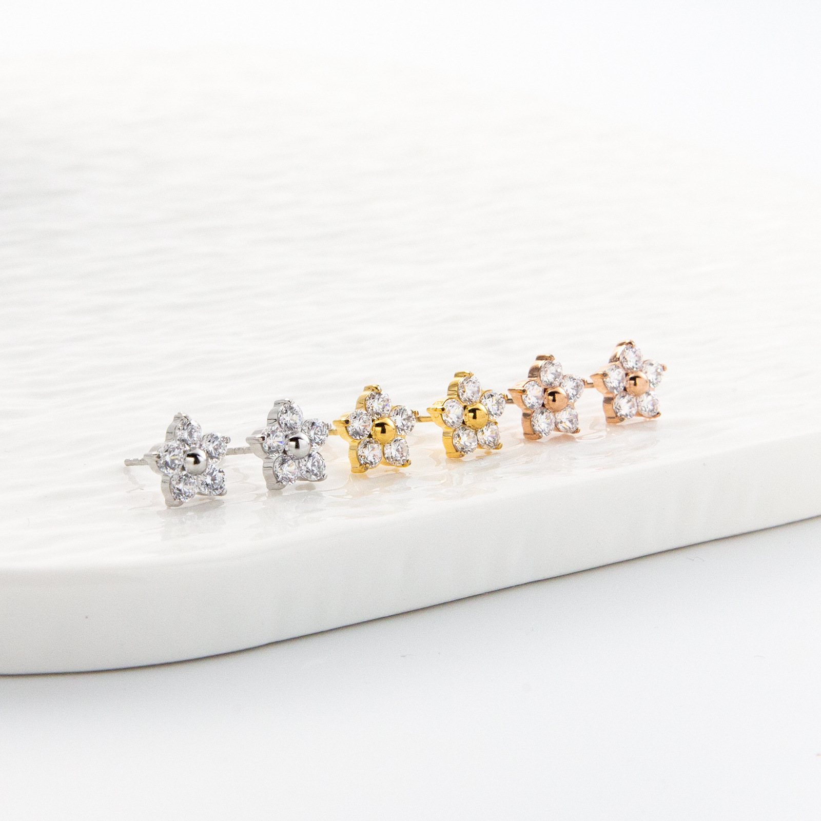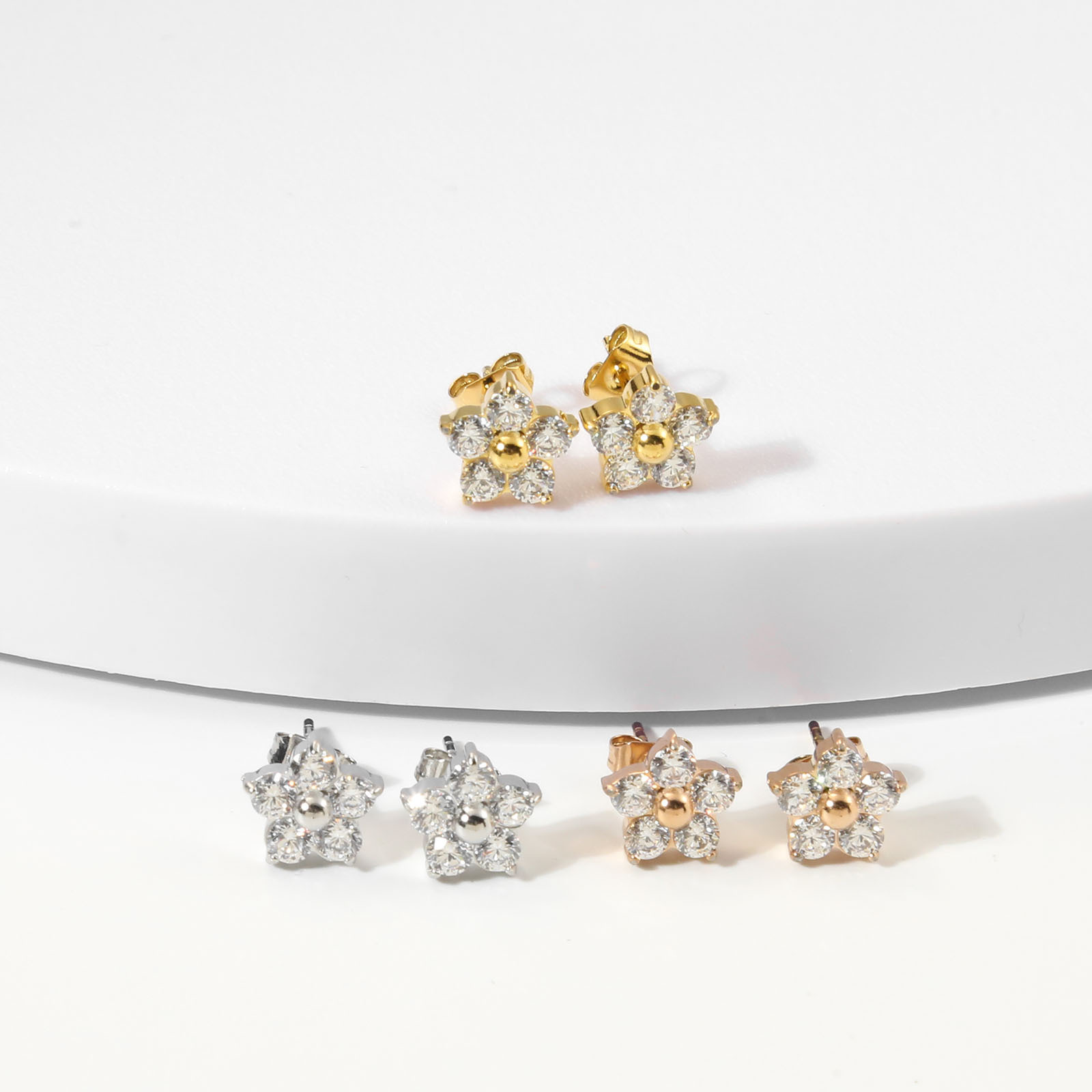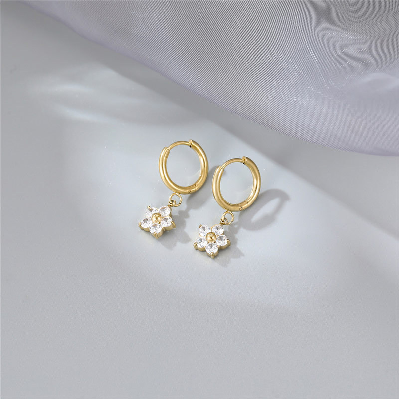 产品名称:2025夏季新款不锈钢花朵耳钉女士高品质镶钻耳环送女友简约百搭